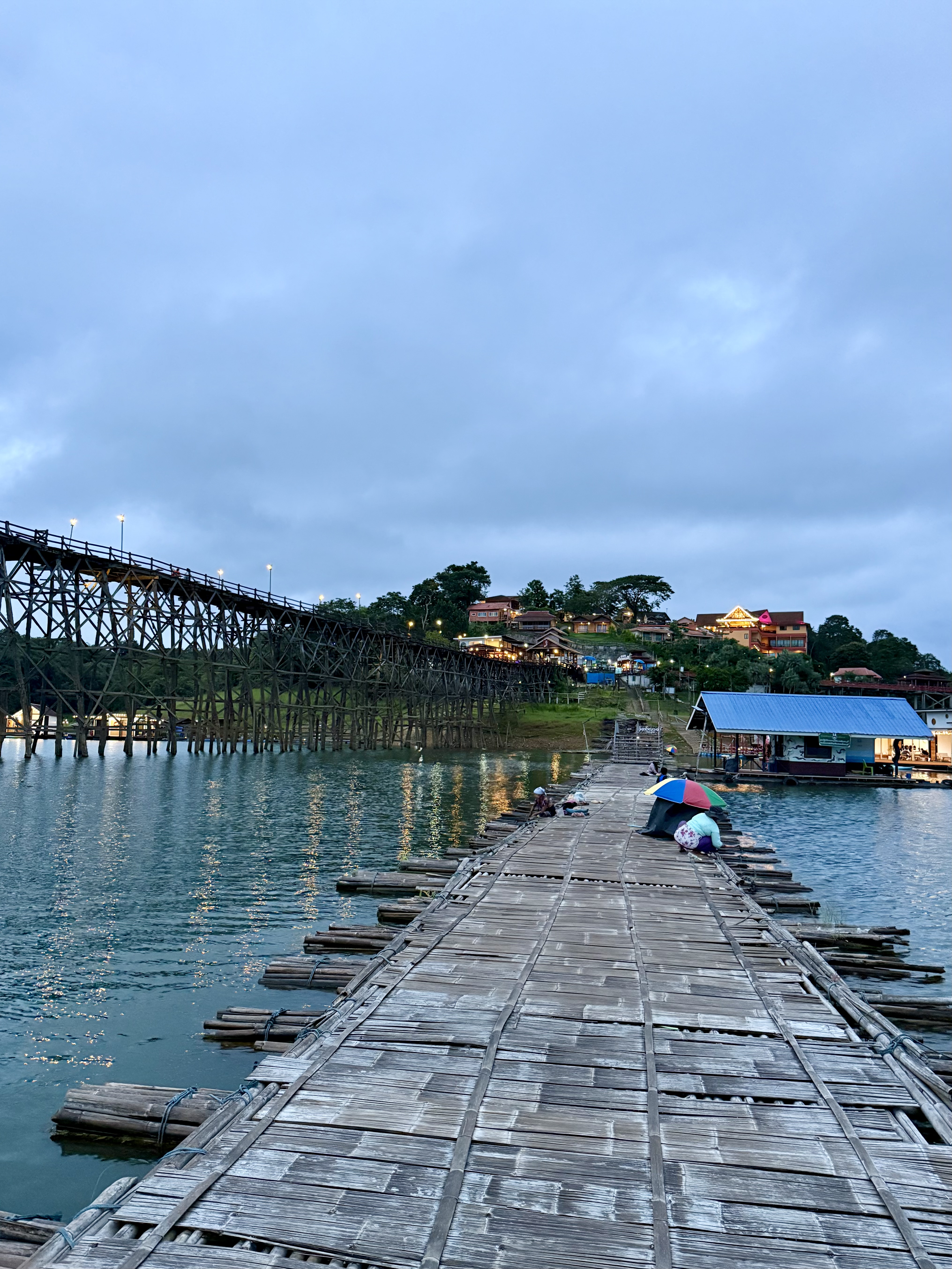 Sangkhla Buri is an interesting town. It hosts the Mon people, a major people group in Myanmar, and a minority in Thailand, and the town of Sangkhla Buri was actually relocated in ~1985, due to the construction of a nearby dam. This led to the old town getting flooded, and the consolidating around higher ground. When riding around town, this becomes increasingly clear: