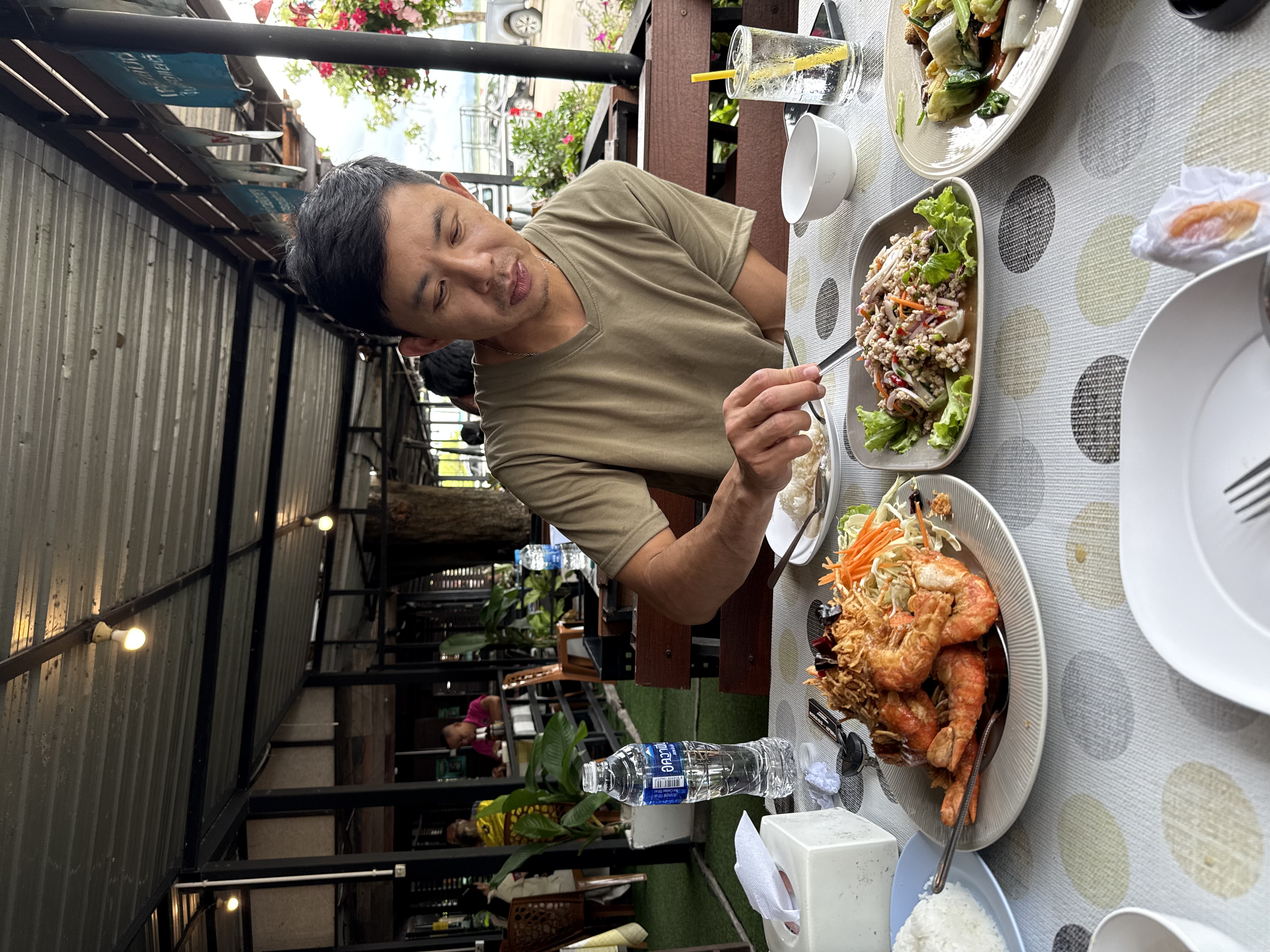 Lunch was by the lake, and we had some fried prawns, basil pork mince, and mixed vegetables.