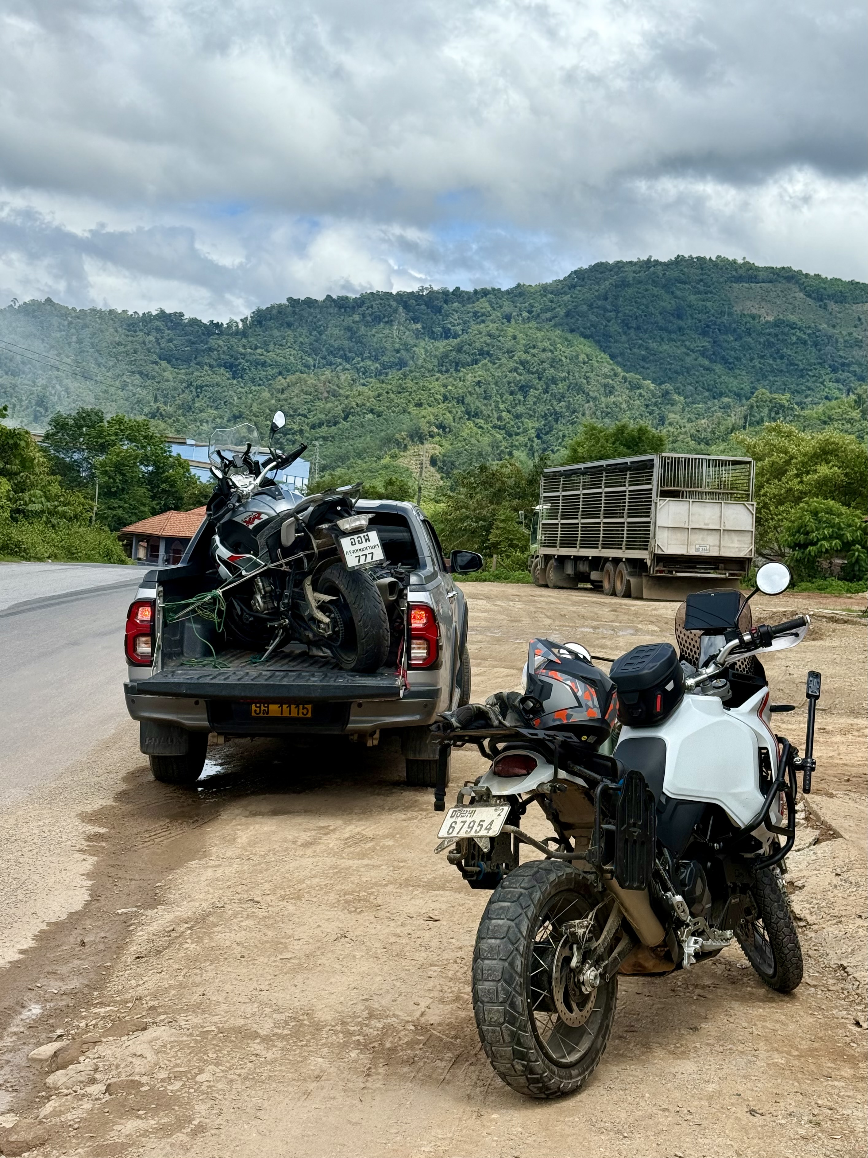 It was then time to bid farewell to Kiat, who would be travelling separately to Boten, as he had arranged for a car to take his bike to Boten. After the last time we rode in Laos, he had vowed never again to ride here due to the awful road conditions, and was keeping good to his promise. It was quite comical when we actually saw the car; it was a Toyota Hilux, they had 3 people, and no equipment to get the bike (which is reasonably large) onto the back of the truck!