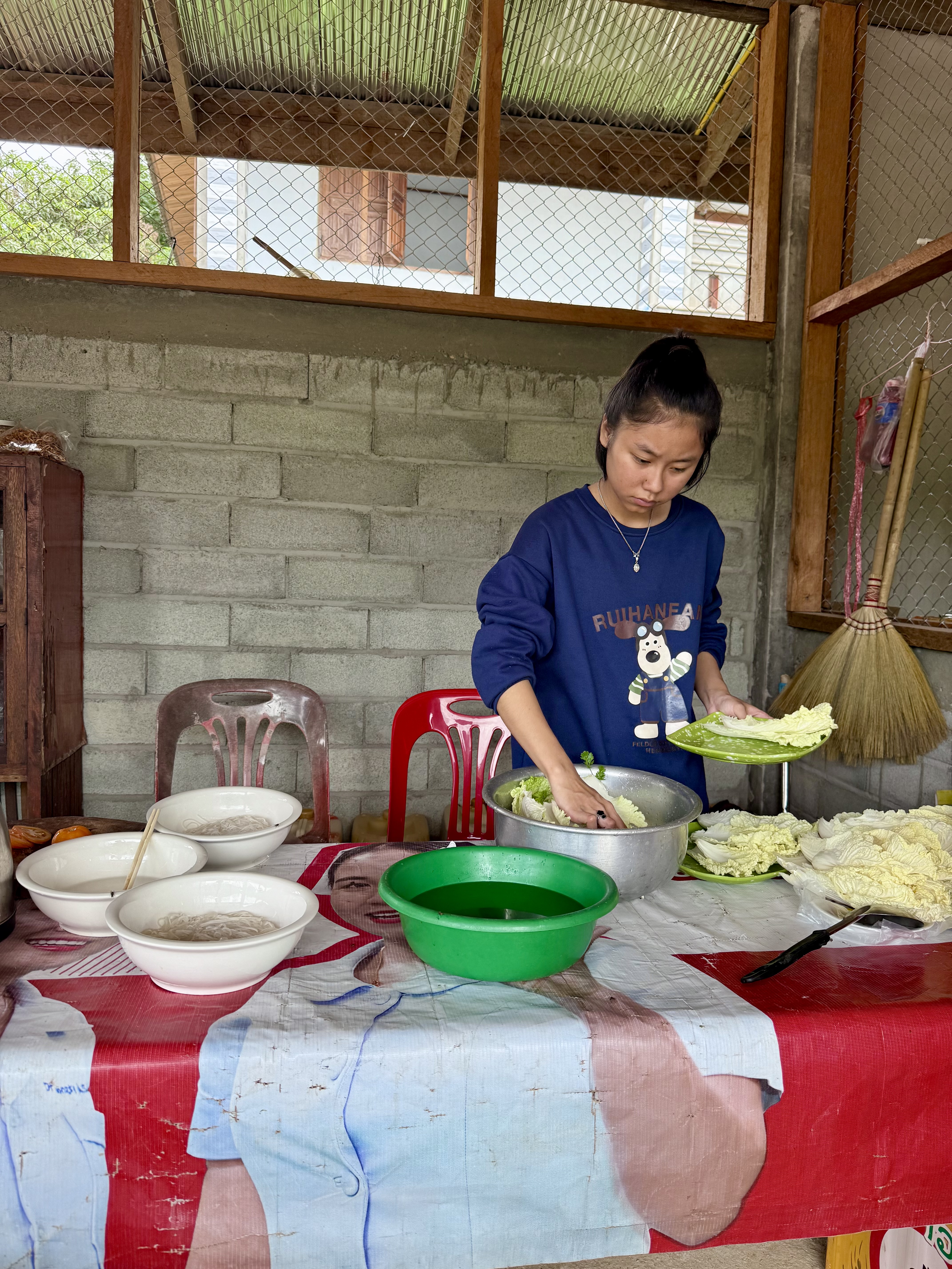 The meal turned out to be rice noodles with some strips of meat and beef (?) balls. Not bad! A truck driver came and also had a meal while i was dining.