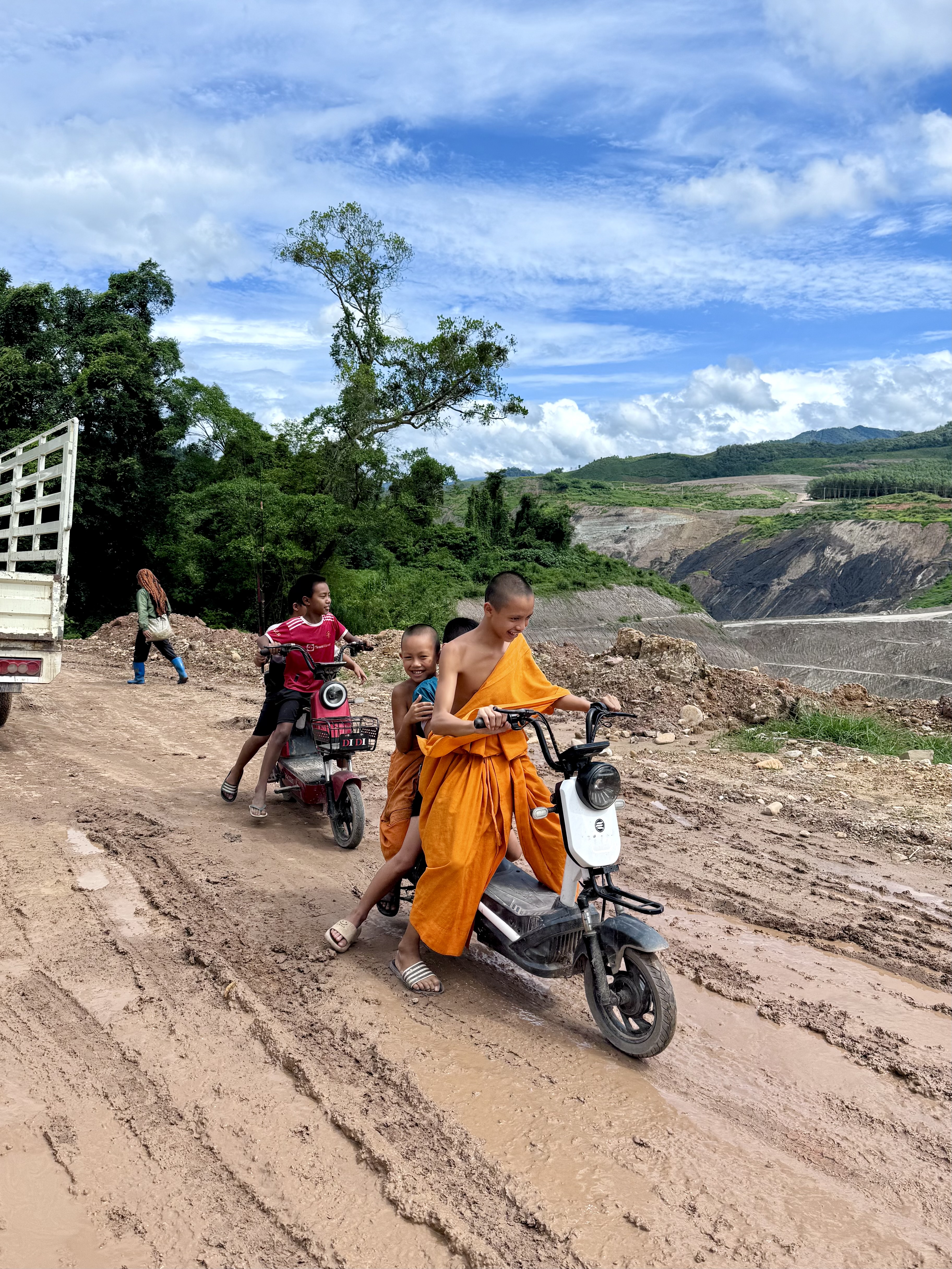 Then, about 50km from Boten, the road surface vanished and was replaced by dirt and mud, and the truck traffic intensified.