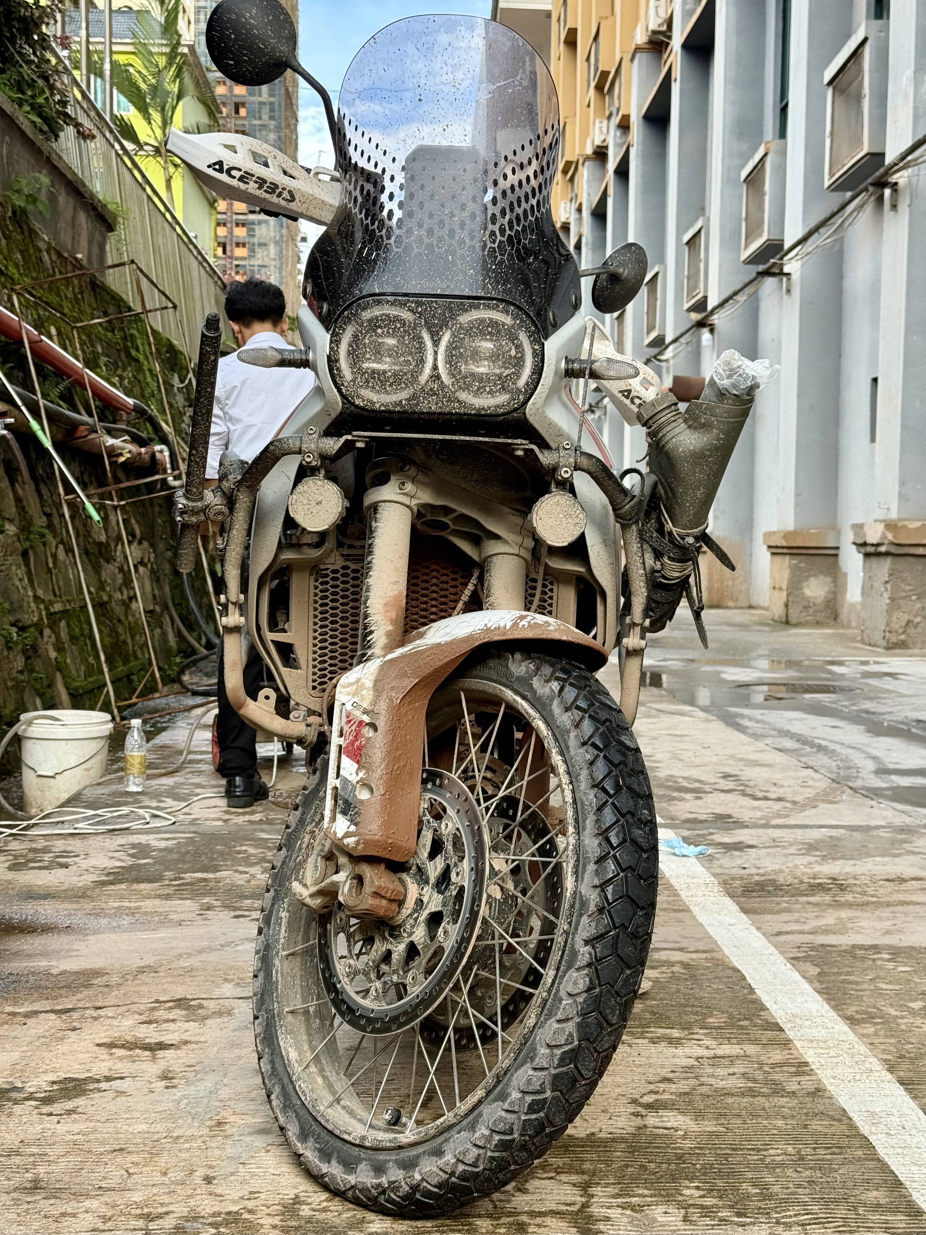 The evening was spent washing my riding gear, my boots, and the motorcycle.