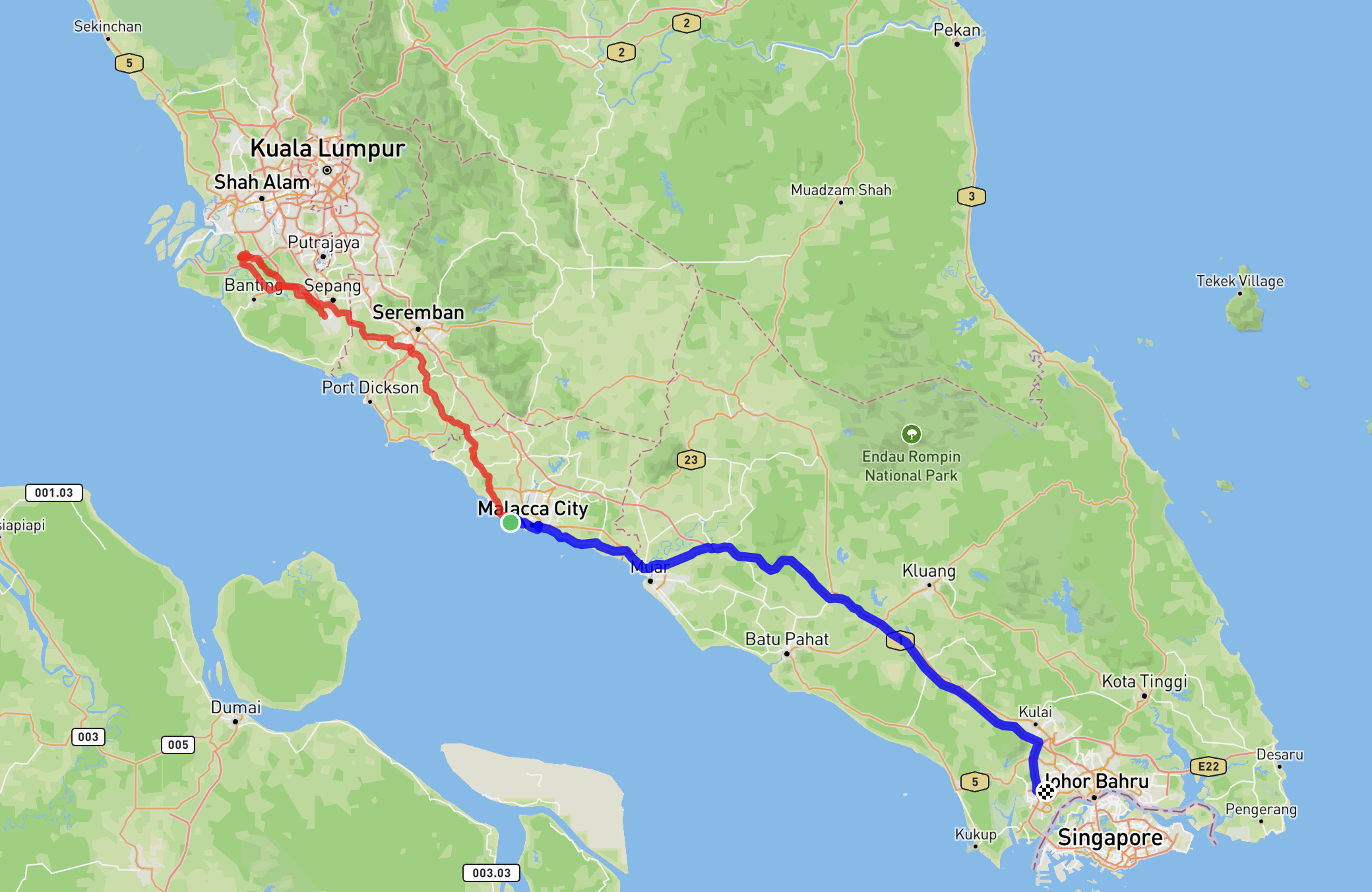The highway from Melaka to Johor Bahru is quite a nice one; traffic was relatively light, and speeds were fast.