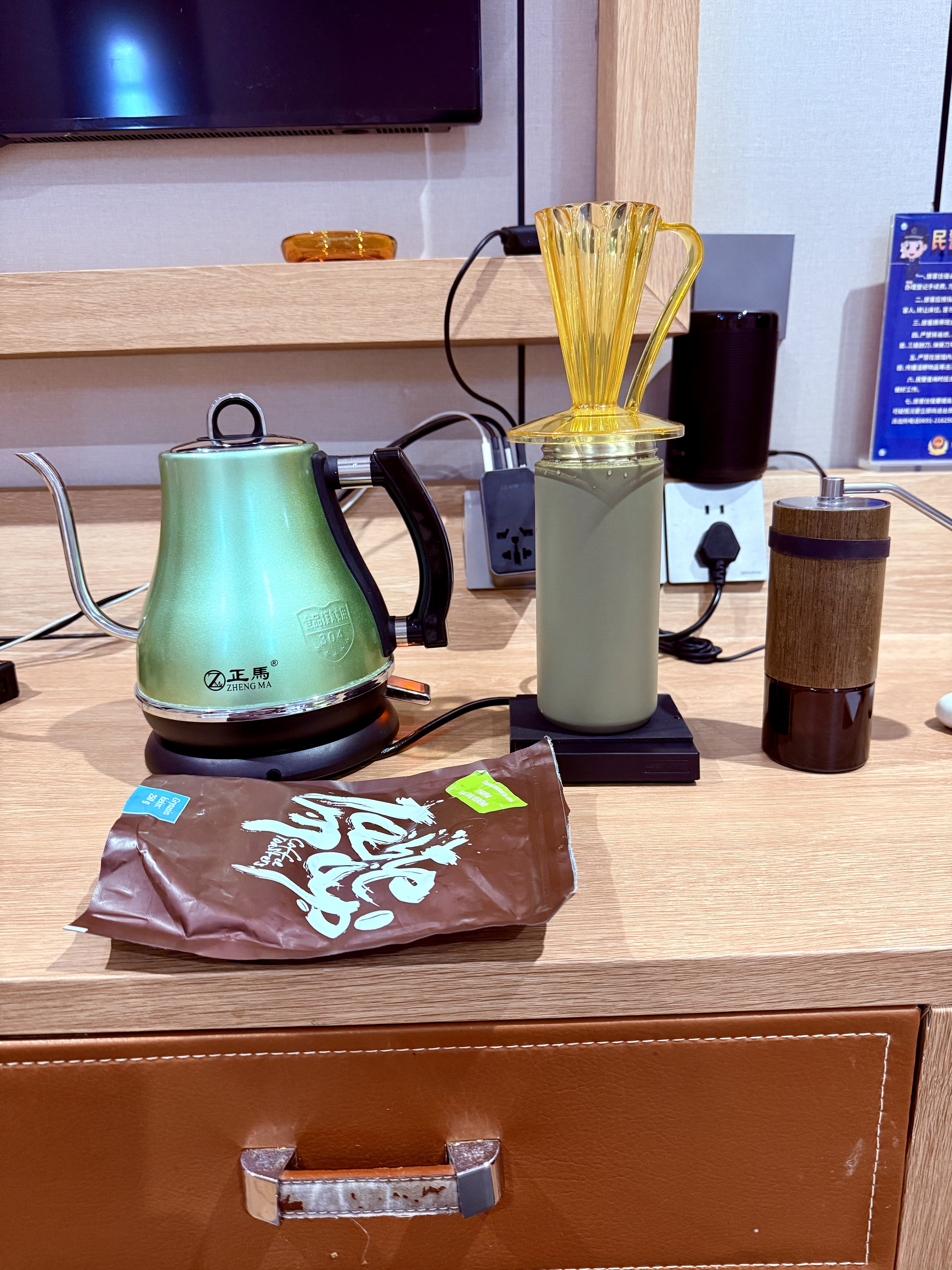 Back at the hotel, I had a very pleasant surprise waiting for me; there was a gooseneck kettle in the room! I was so excited that I made tomorrow morning’s coffee there and then. Lets hope my thermos keeps it warm until then…