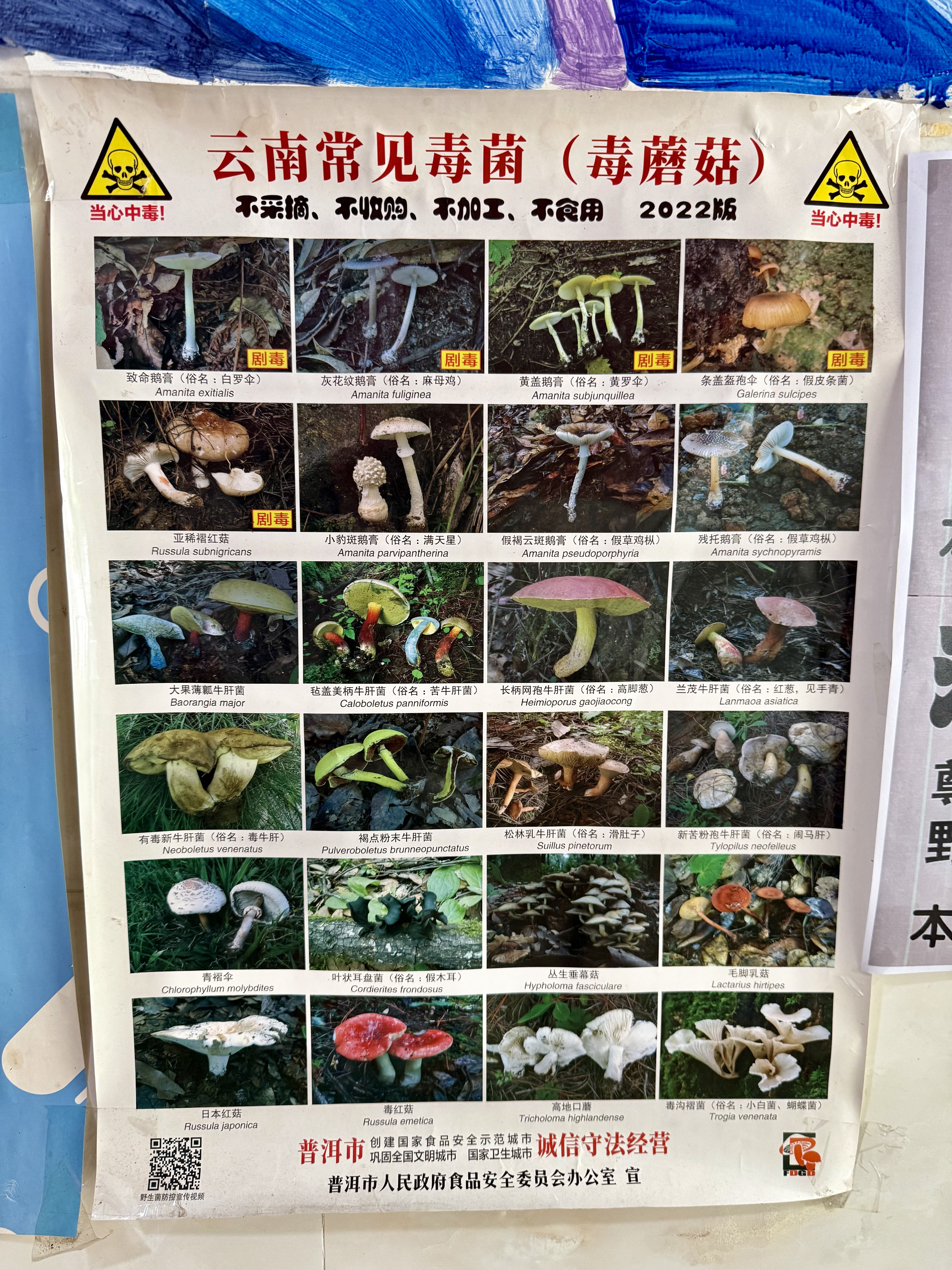 A chart on which poisonous mushrooms to avoid in Yunnan
