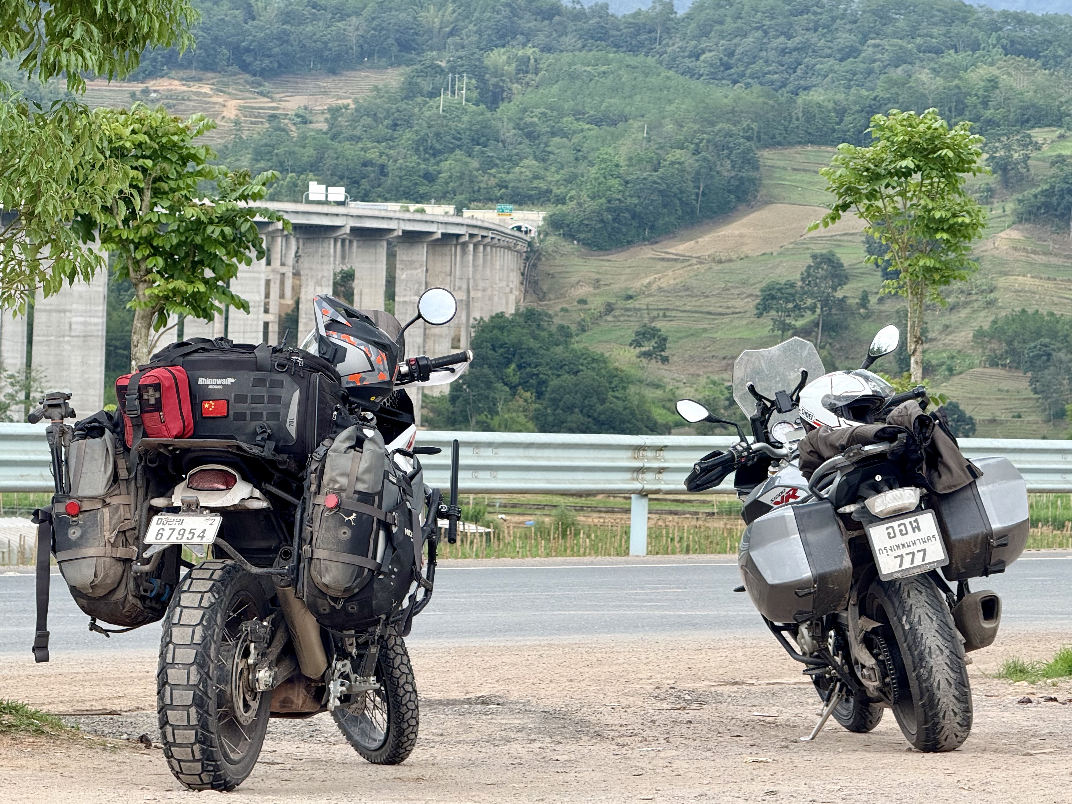 Today, traffic stops were friendly, and police asked where we were going, tried to sneakily take photos to show their friends, and were generally nice. Toll gates were also rather pleasant - with each person telling us to “please be careful when riding on the road”. Something is a bit strange here with the toll situation in Yunnan. Officially, I hear that motorcycles are not allowed on these major highways, but the rule of practice seems to be: