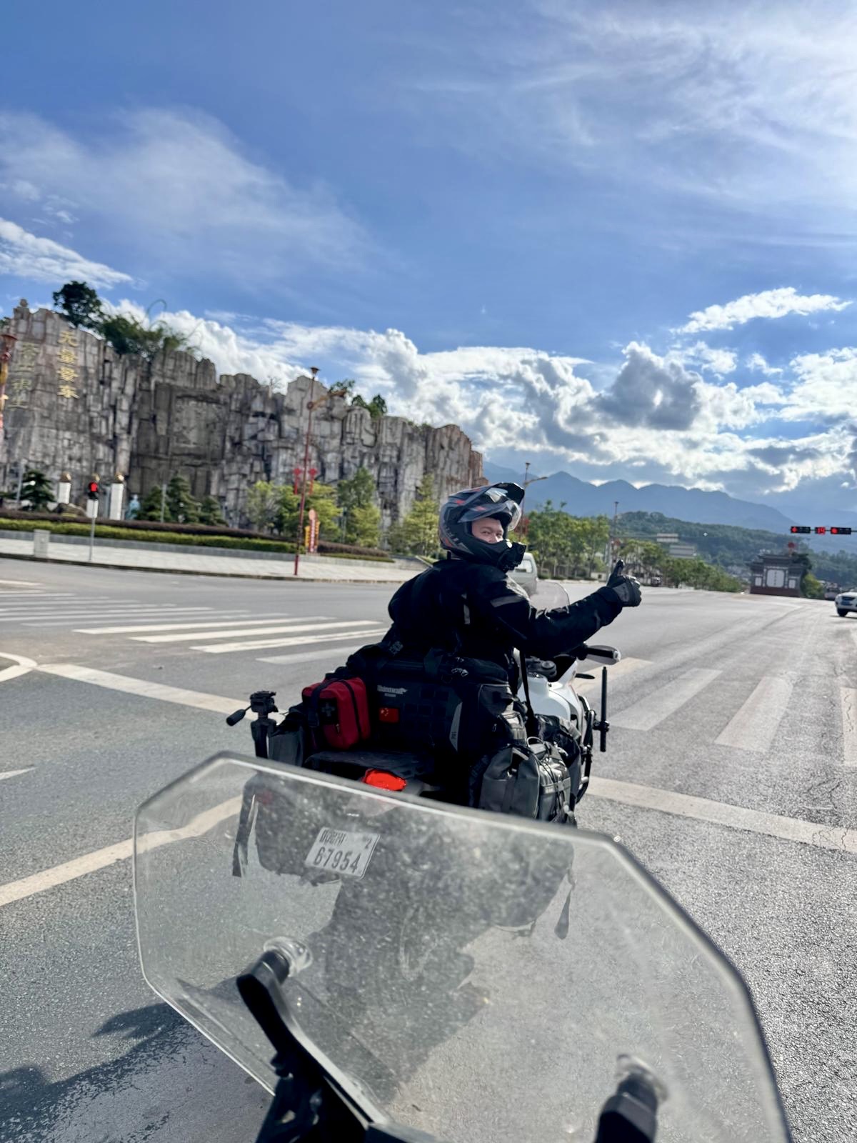 - In Laos it was trying to not destroy the bike’s suspension and fall in bad road conditions. And now in China, it is a sort of zen where I am riding at the speed limit(ish), and spend my time taking in my surroundings, and letting thoughts come and go while riding. Such thoughts were as trivial as “I wonder what the ratio of (1) the number of tunnels I’ve passed through in China in the last 2 days, to (2) The number of tunnels I had passed through ever in my life” [I think excluding metros (and only counting road tunnels), that ratio is bigger than 1:10 (i.e. in the last 2 days I think I have gone through >10% the total number of road tunnels I have ever gone through in my life).], or “I wonder how solar installations here have affected electricity prices in rural areas”. [I didn’t dwell on this one for too long]. With the road more or less floating in the air, rather than following the contours of the land, it is a completely different feeling. There is a strange sense of distance between the road and the surrounding environment - as though it is a movie or screen saver going by. Small rural villages on mountaintops are tens of metres away, but feel a world apart from the perfectly paved bitumen roads, and well manicured hedges at the centre and edges of the road.