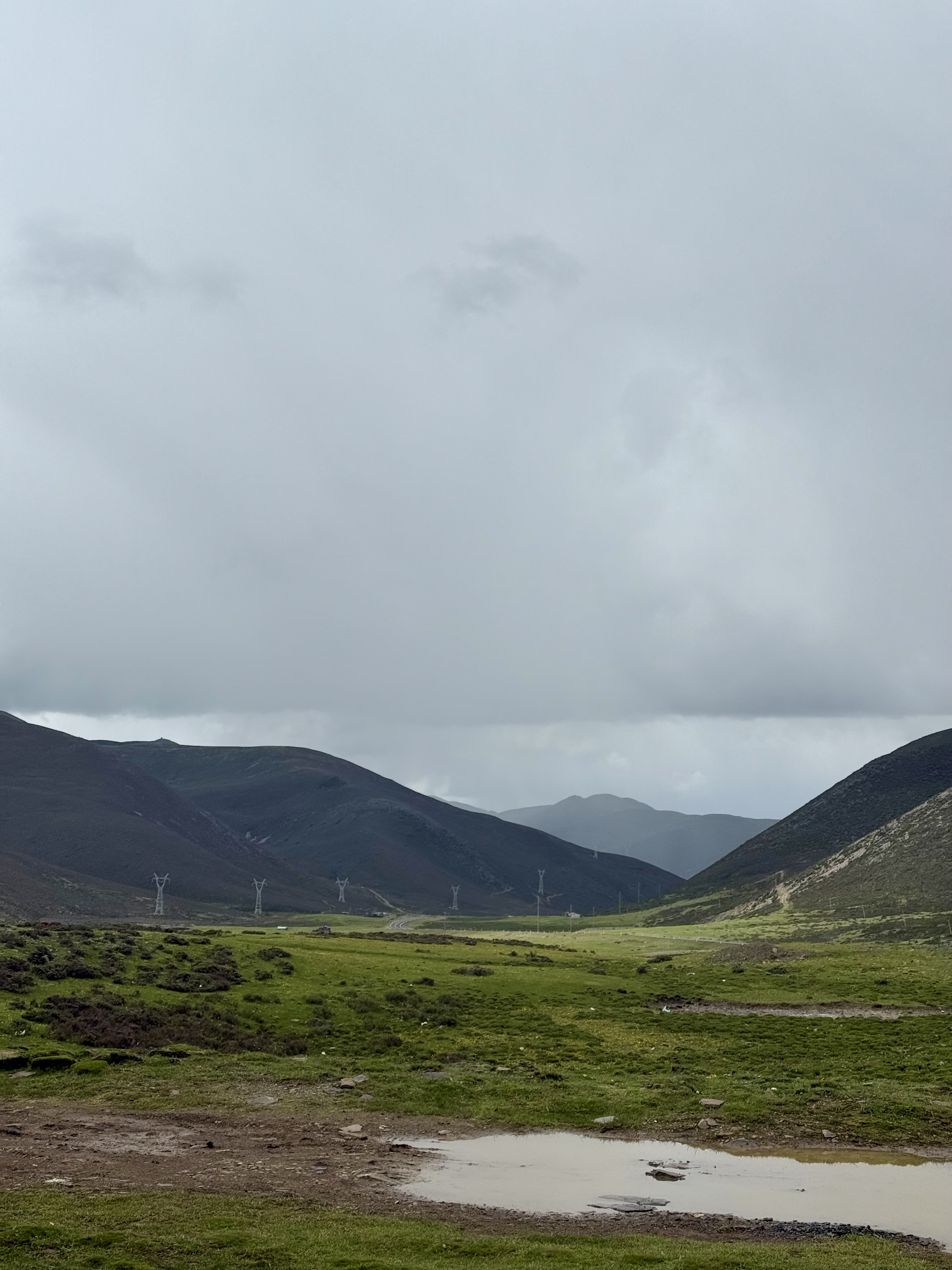 The first section was characterised by small Tibetan towns, set among dry-ish mountains. This was in part retracing our steps from the previous day, until we reached the intersection between the G547 and the G227 (which we were travelling on) - and continued on. This was where the scenery started changing. We revisited the damp, reddish green landscape from a few days prior, as we entered the highlands.