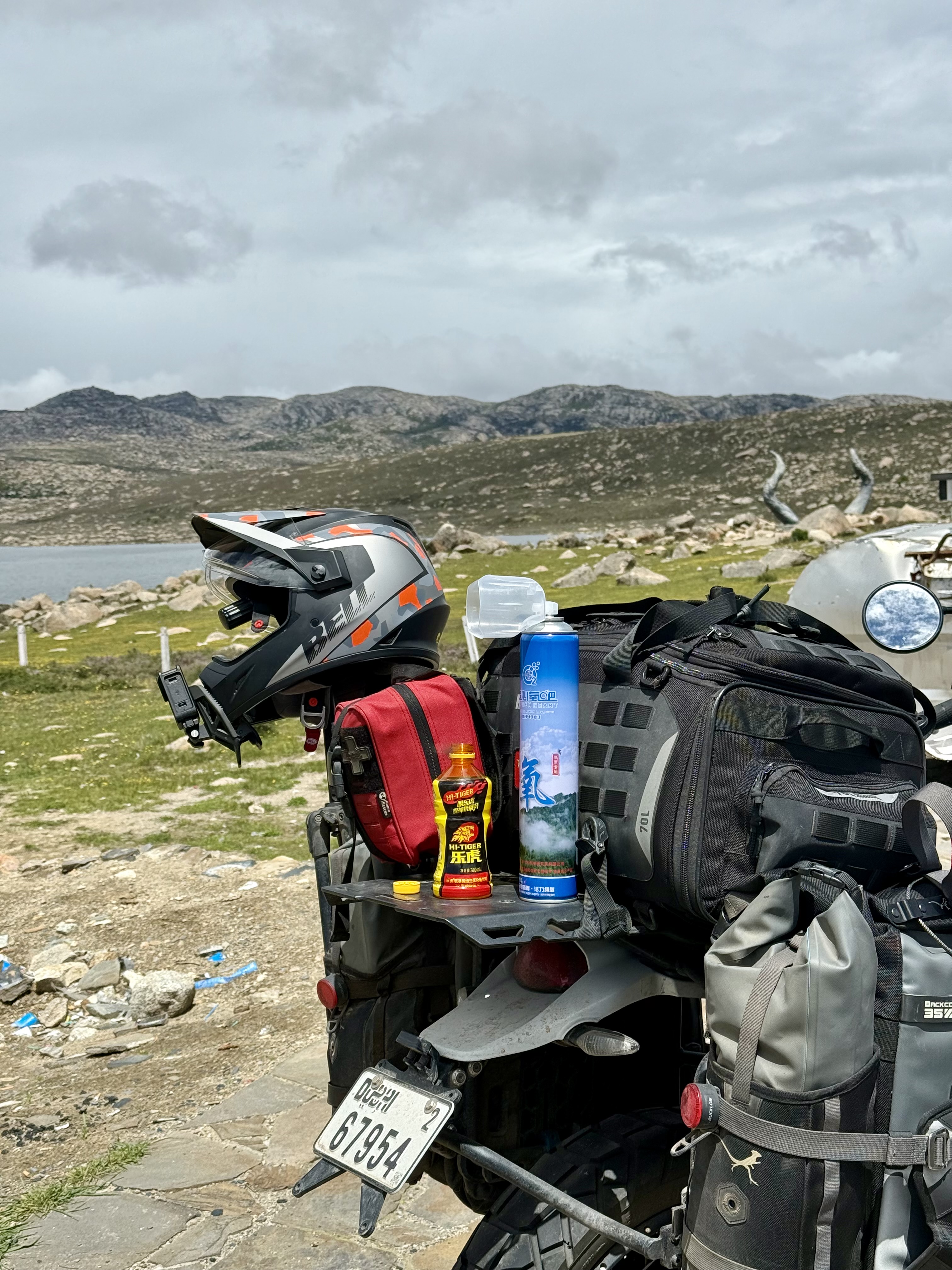 At this point, I was overcome by a wave of tiredness and loss of focus - much more than I’d experienced before while riding - so pulled over at a rest stop. This was probably some combination of the altitude (we were at ~4600 MASL), average sleep (6 hrs), and post-food sluggishness. After a brief walk, an oxygen can (only 10 RMB!), and some red-bull-equivalent energy drink, it was back to the road.