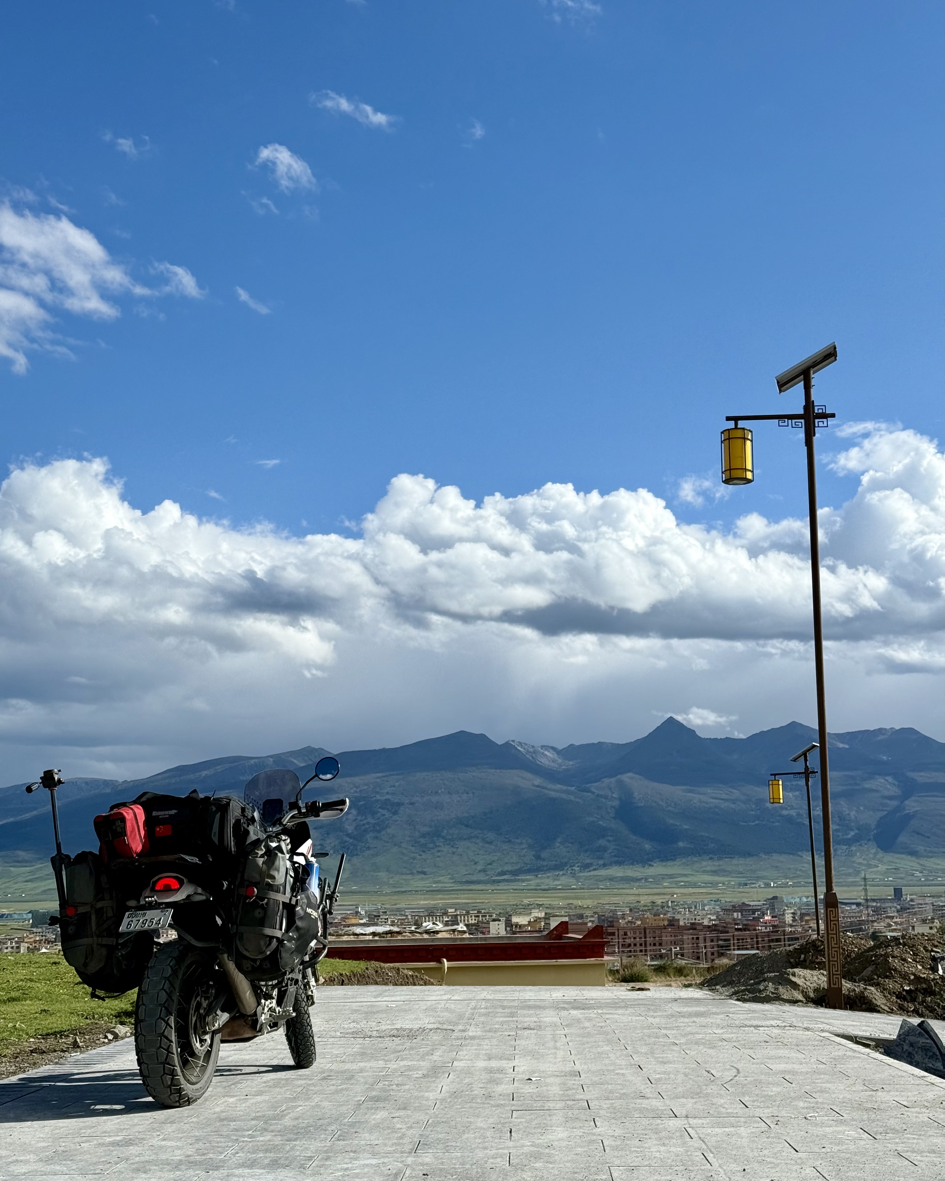 I started riding at a moderate pace - sensible speeds in the wet - but not so slow as to be travelling along with the storm. Eventually we outran the storm, just as we started our ascent to the Haizi Mountains. This was the second epic landscape, with a smattering of rocks at the base of the mountain (left behind by a glacier long ago?) increasing in number and size until the entire landscape was a base of grass, covered in boulders. It is hard to capture, but it truly felt like we were in a giant’s land on the roof of the world.