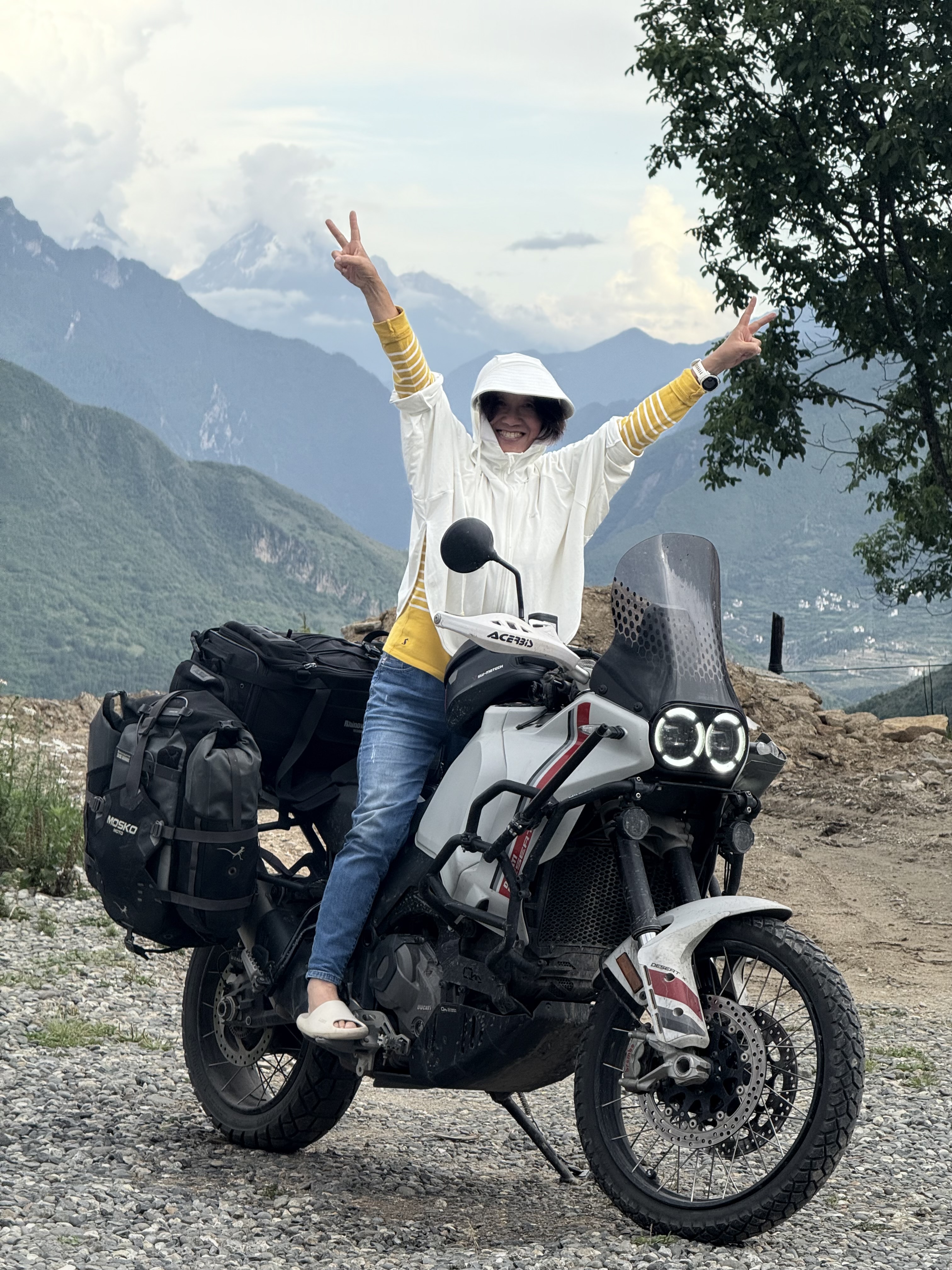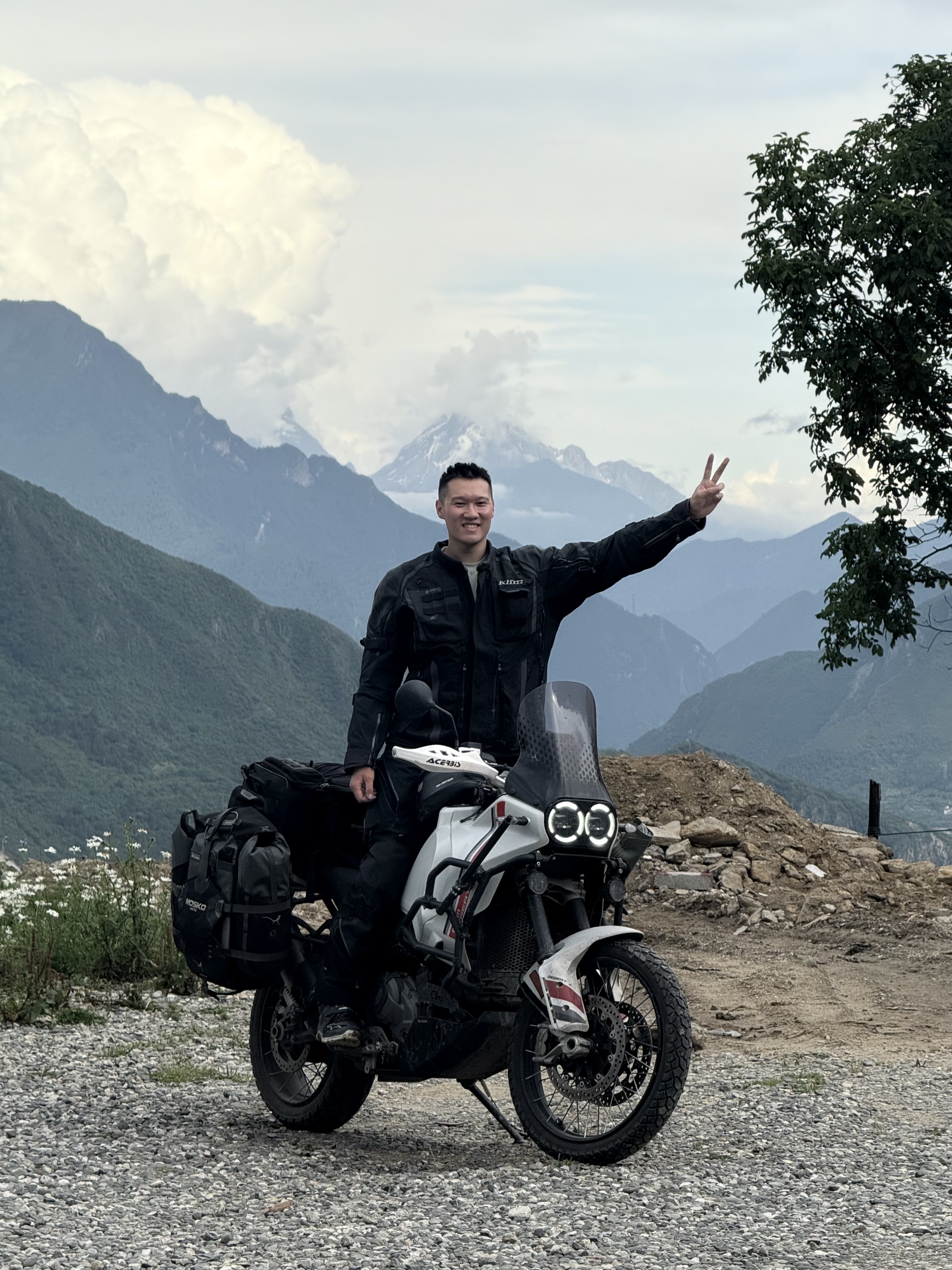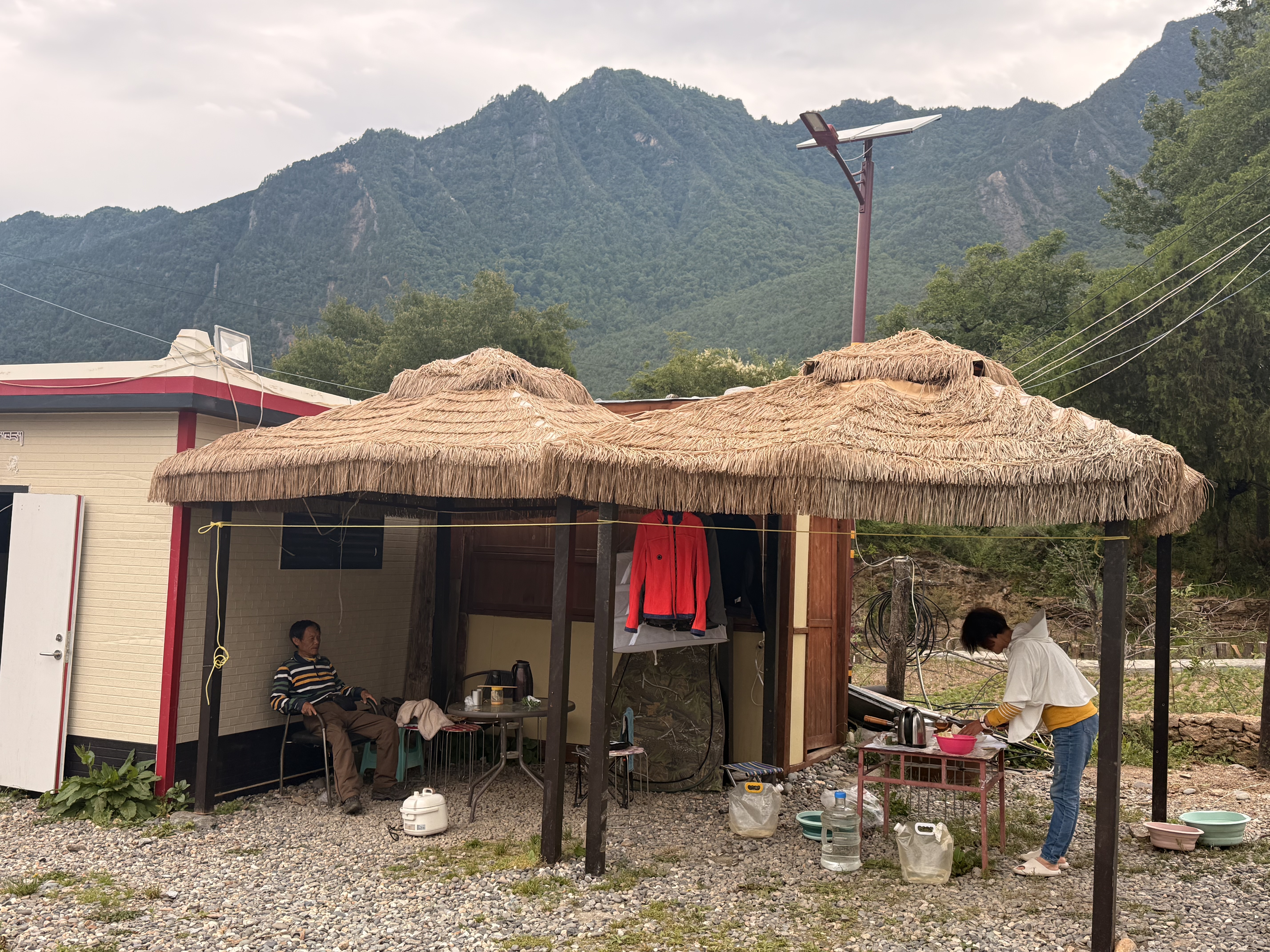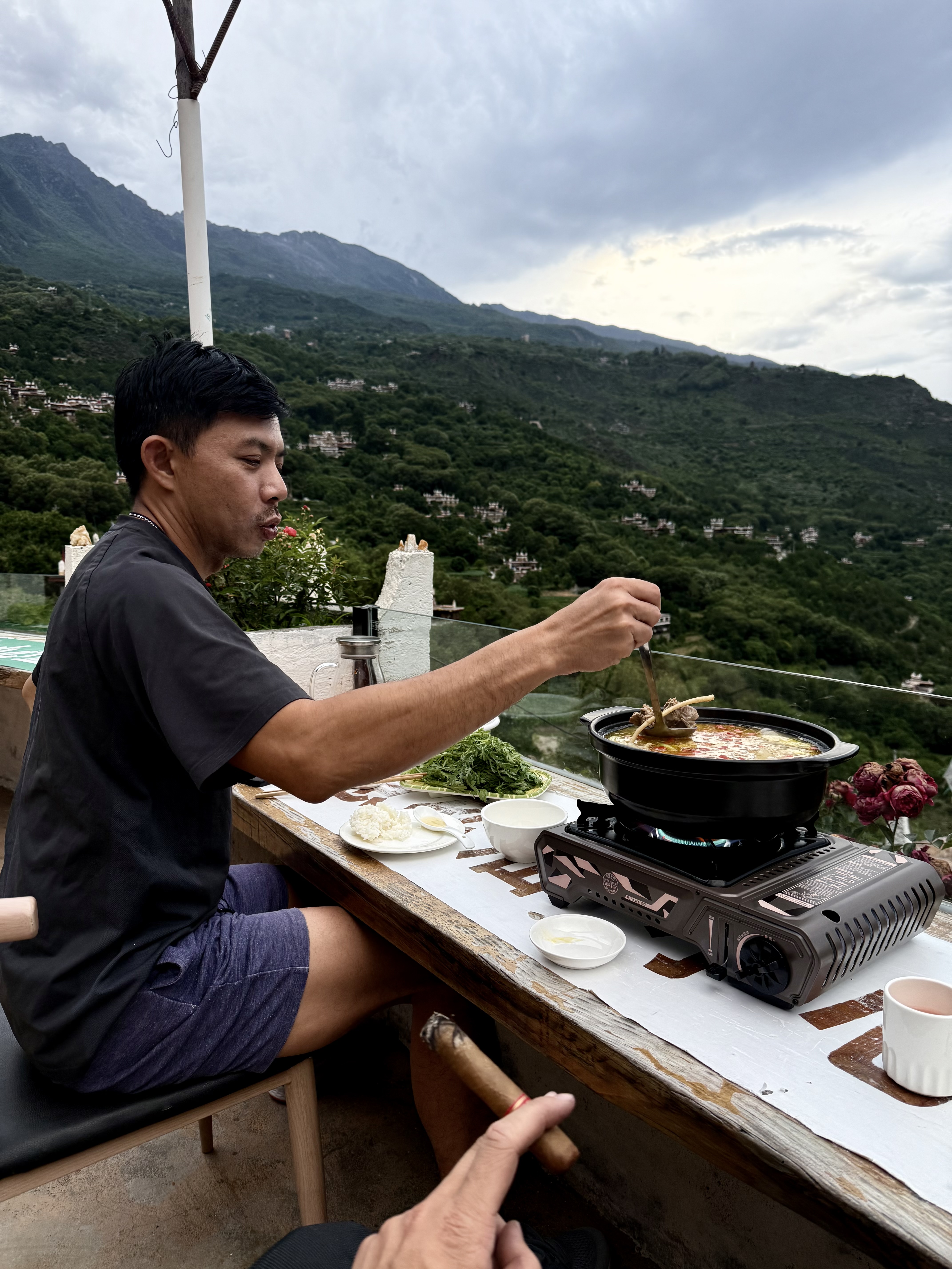 It felt a bit like being in a mountainside village from a Shinkai picture (a la “Your Name” / “Kimi no Na wa”). I spent a while searching for a nice vantage point for photos, ascending up the mountainside until I found a deserted viewpoint, with only a large black van in the corner. I really put in the work for this, picking up rocks and setting them into the mud for a place to put my kickstand without my bike falling over, when I was approached by a woman from the van. She was senior in years, and spoke with a northern accent, making conversation. Soon enough, I found that she and her husband (63 and 70 respectively) had retired and were travelling China in their van. They had been on the road for 3 years! And had been all over. This past year they had circumnavigated China, travelling about 60,000 KMs. She was quite nice, kept offering for me to stay in the room next to where they had parked the van, and told me to stay for dinner (as she was cooking).