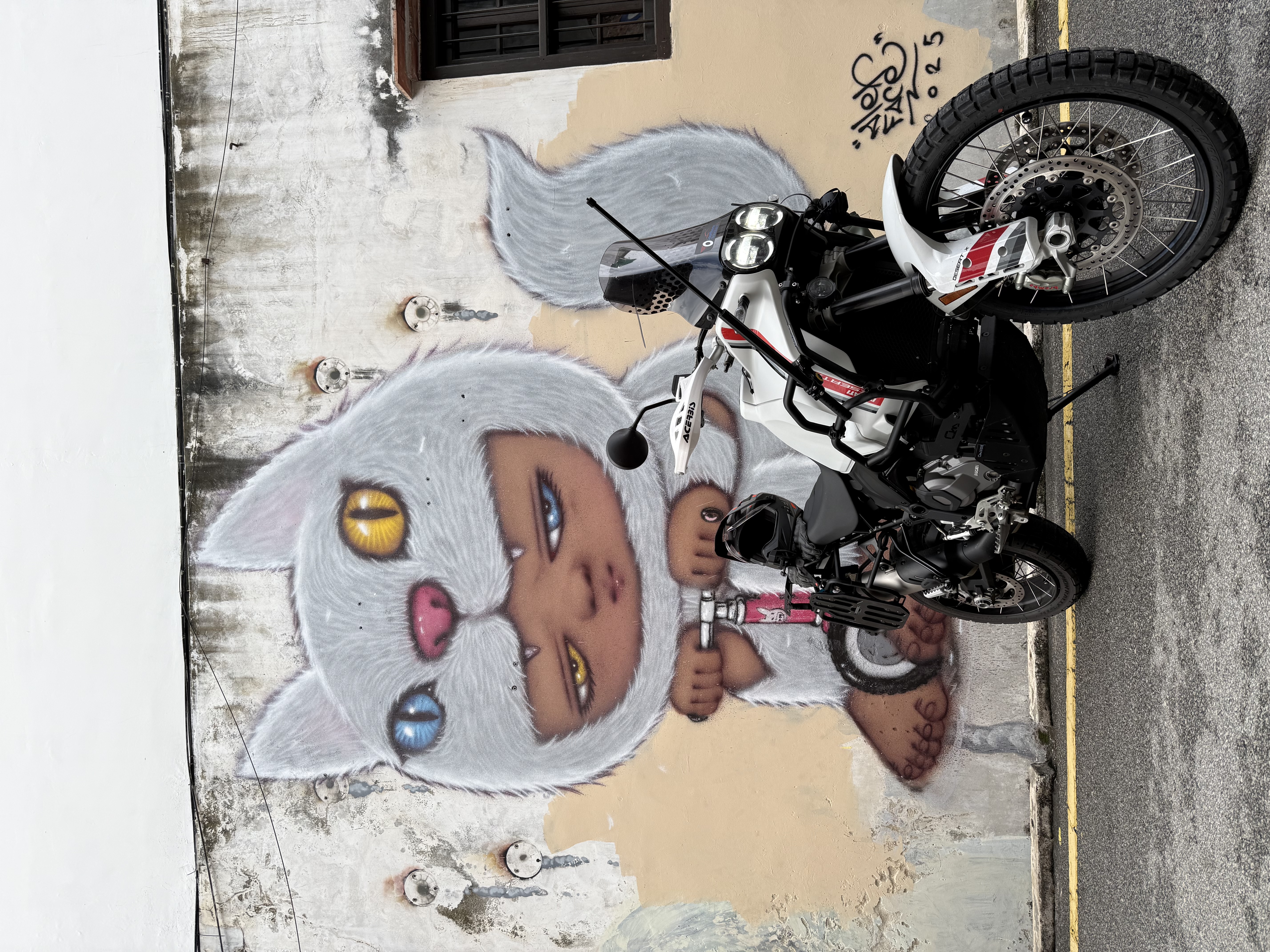 Then we reached Penang. First impressions of George Town - very old, run down, looks as though the glory days were in the late 1800s. It was also the first place with streets that gave me “tourist trap” vibes. Irish pubs, “choose your next adventure” travel agencies, and “scooter for rent” signs. I, (guilty as ever) after putting a load of laundry on, went straight to one of the main tourist trap parts - Armenian Street - known for its street art to snap a few pics of and with Sandeep. Dinner was street food, and then I went scavenging for durian.