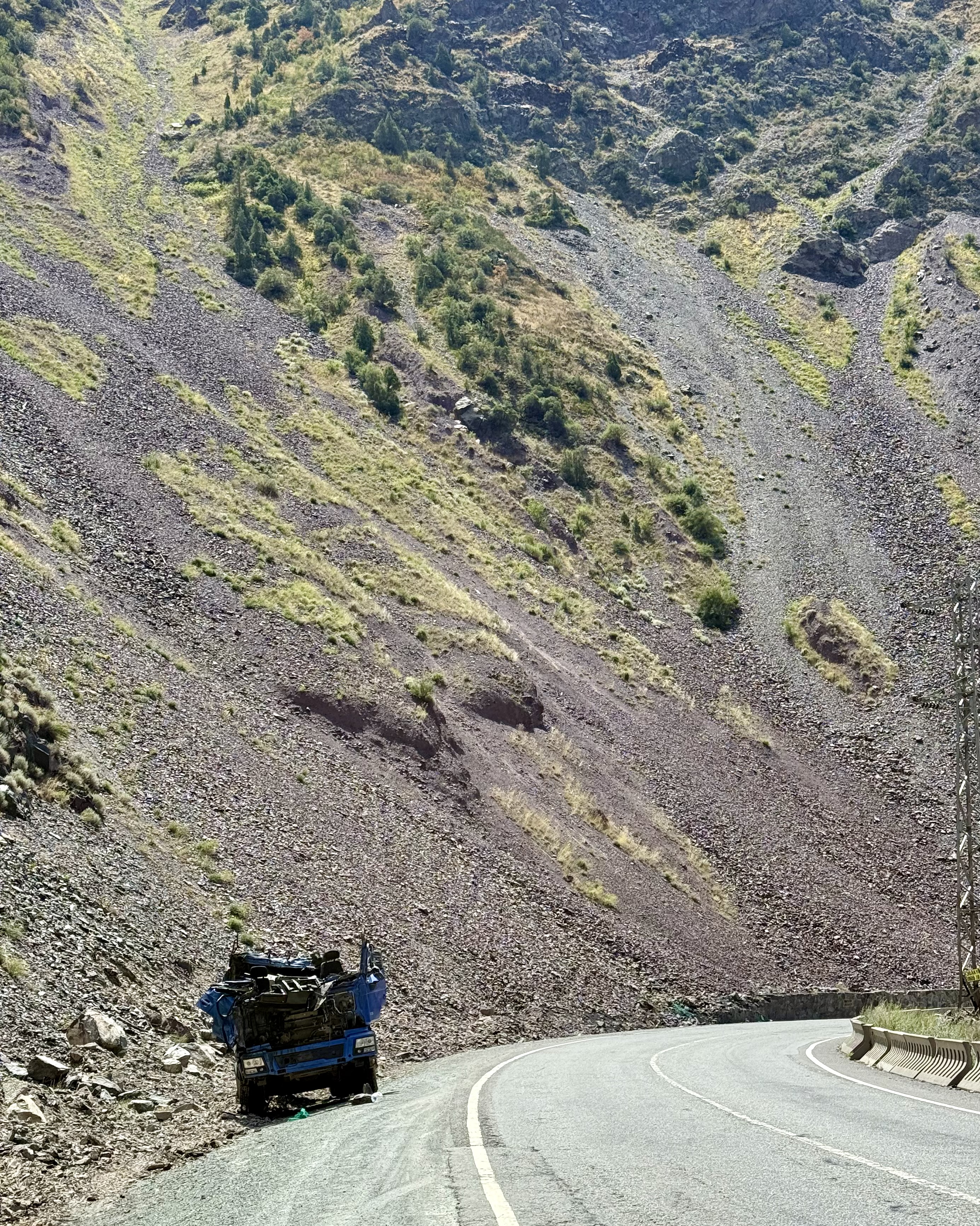 The roads transitioned from agricultural fields, and small villages hugging snow melt rivers, to Rocky Mountains, with the road bending tens if not hundreds of times to climb the mountains. As I gained altitude, the temperature dropped from high 30s to below 20. Not yet cold but definitely cool and comfortable.