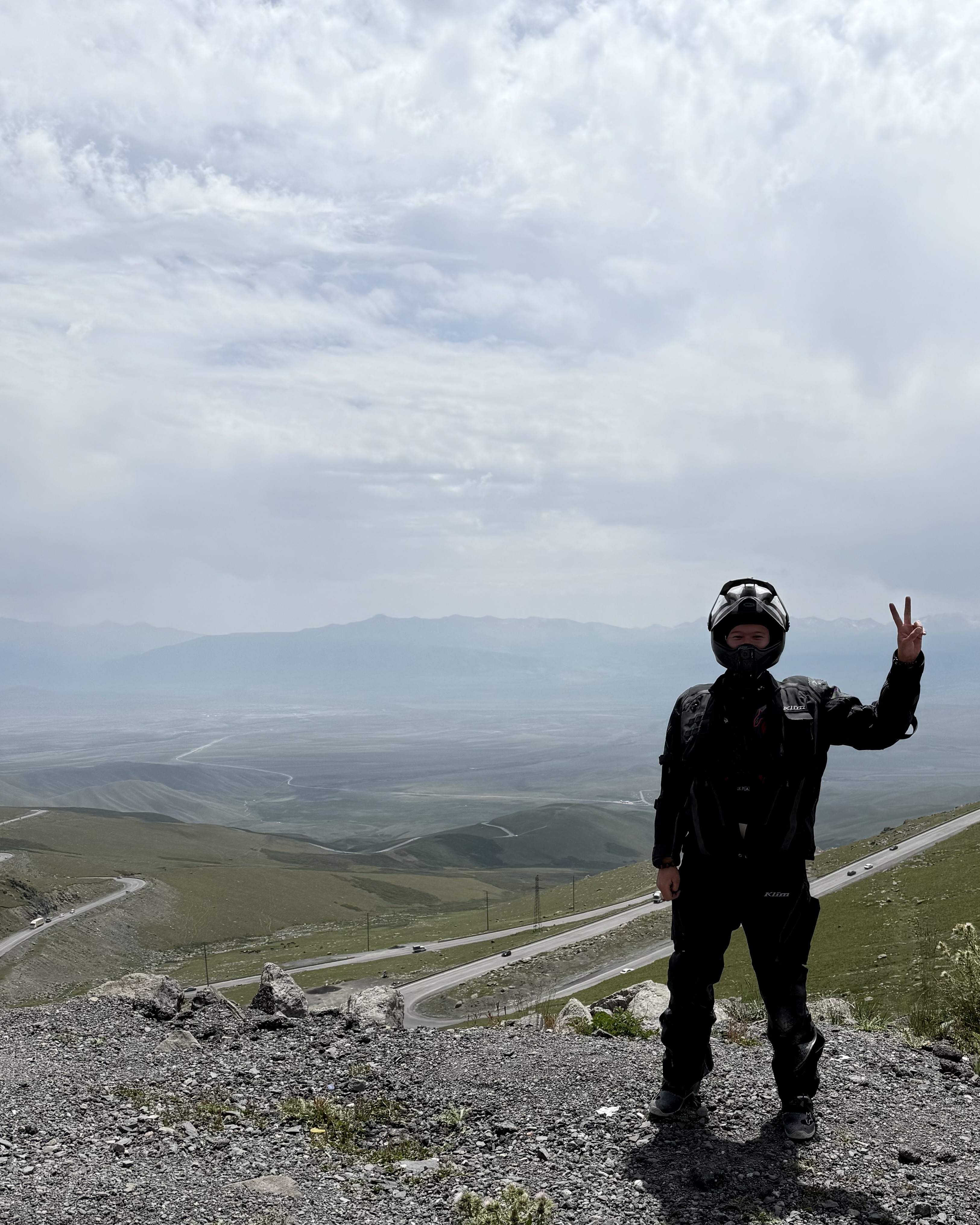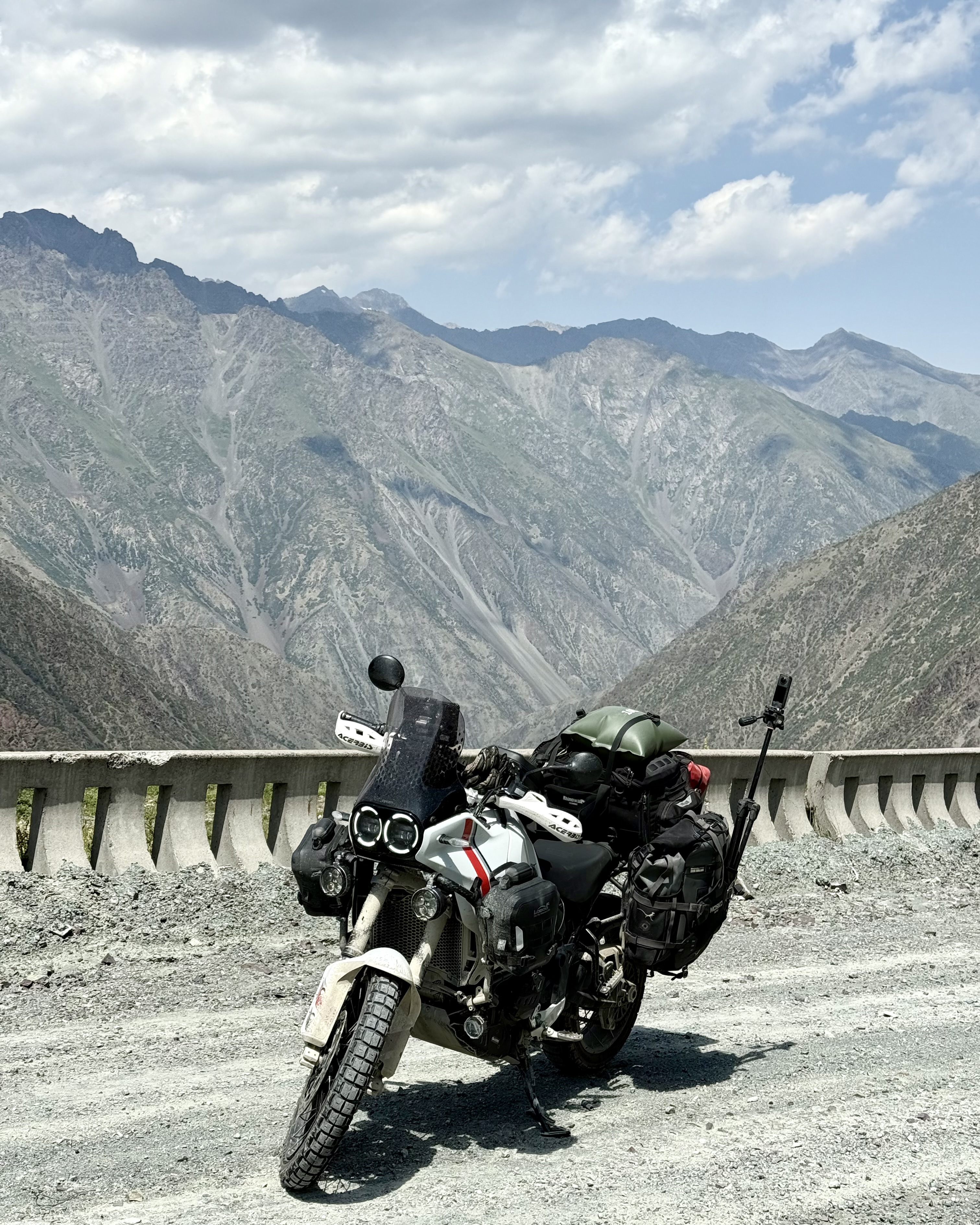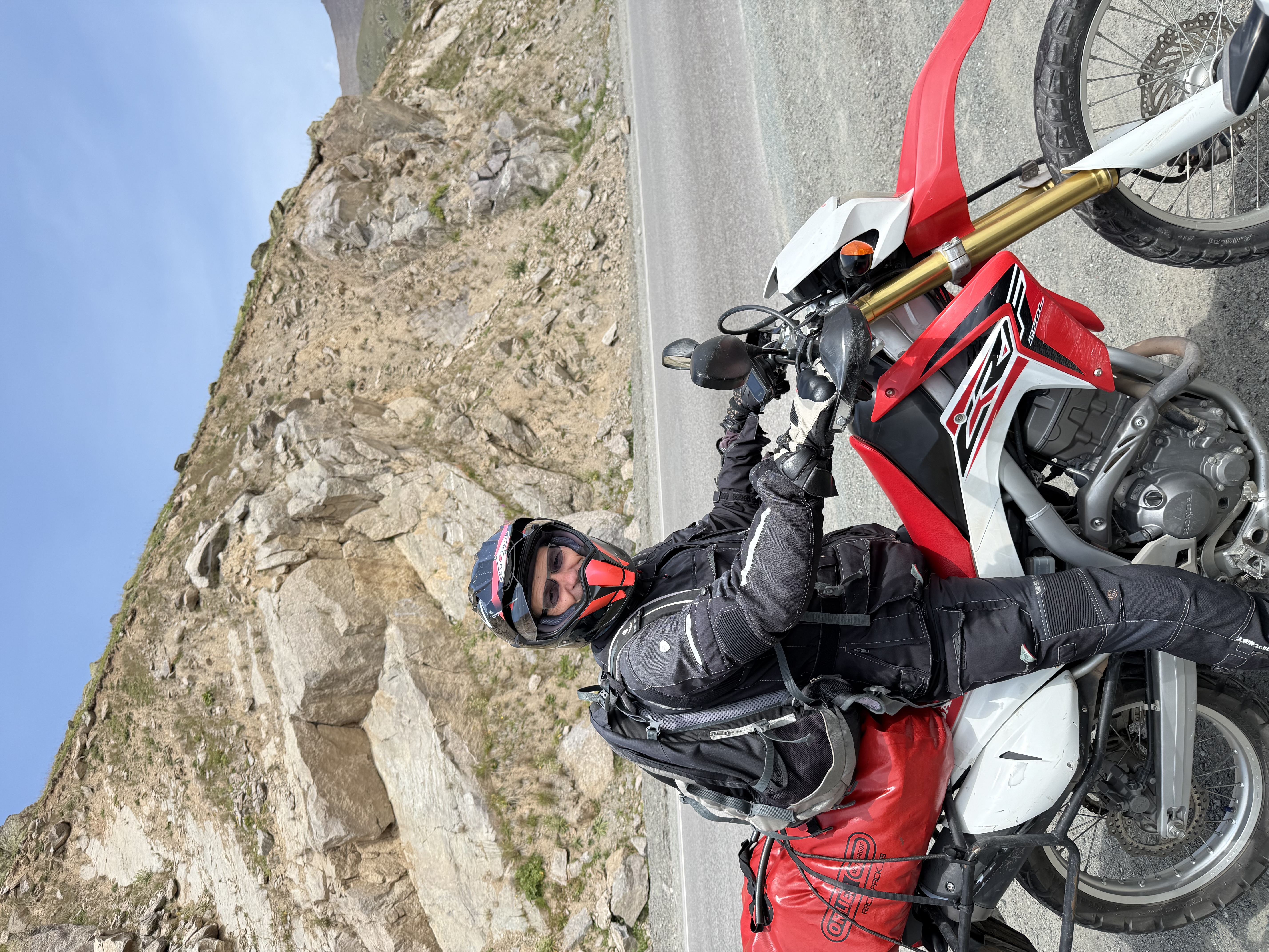 A trucker helped me take a photo and then later on, an older german bloke on a Honda 250 CRF stopped to say hello. He saw that I had a Desert X, which is the same bike he has in Germany. He was 58, and in Kyrgystan for a holiday with his friend.