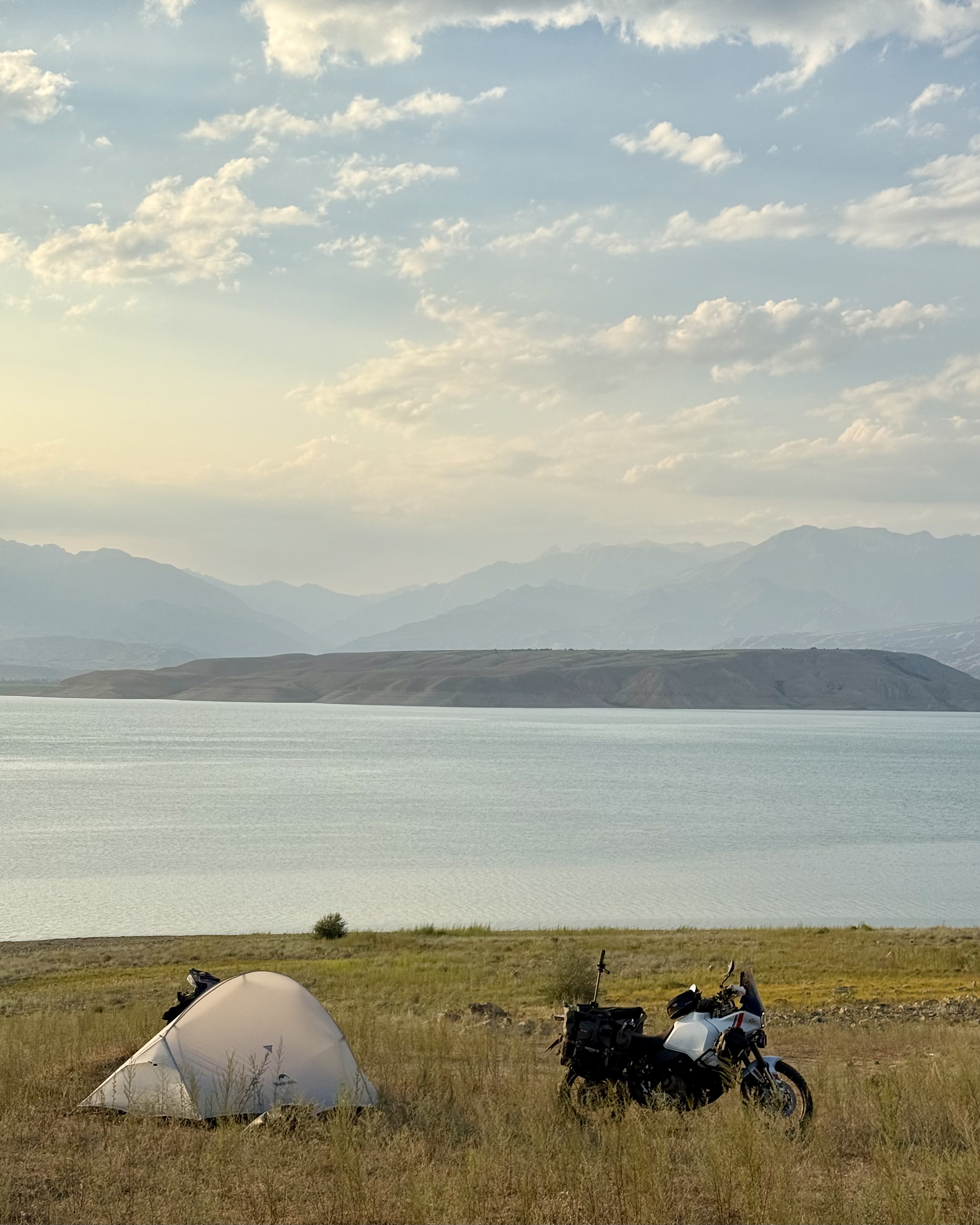 By the time I reached town, it was already nearing 5PM. With sun setting at 8:30, and wanting to find dinner and set up camp before dark, I couldn’t be too ambitious with my riding. I decided to stop on the other side of the reservoir (quite large, about 30km long), and while refueling, asked the cashier if they knew any good camping spots. I was told there was a nice place about 60km down the road, and thus set off.