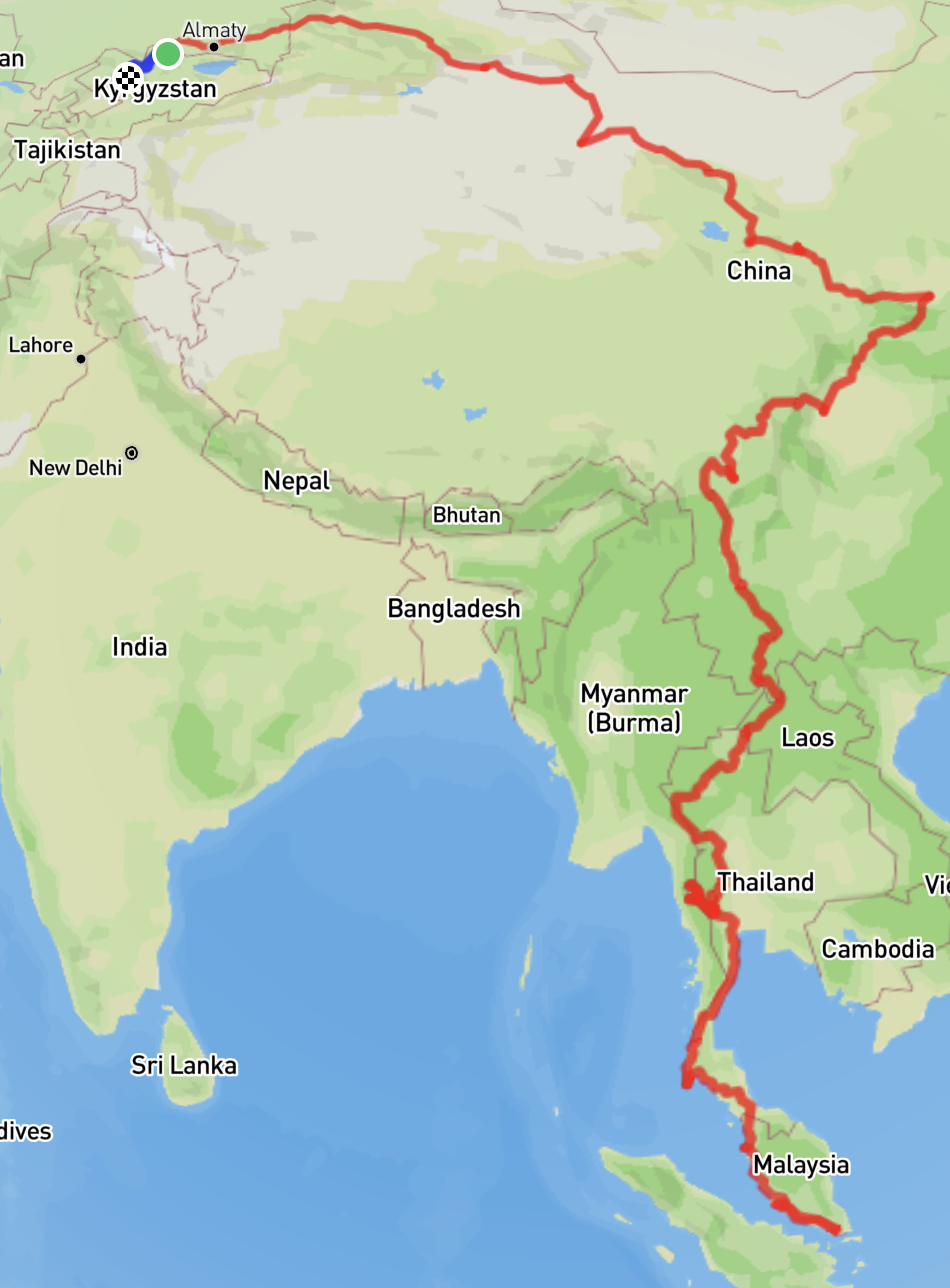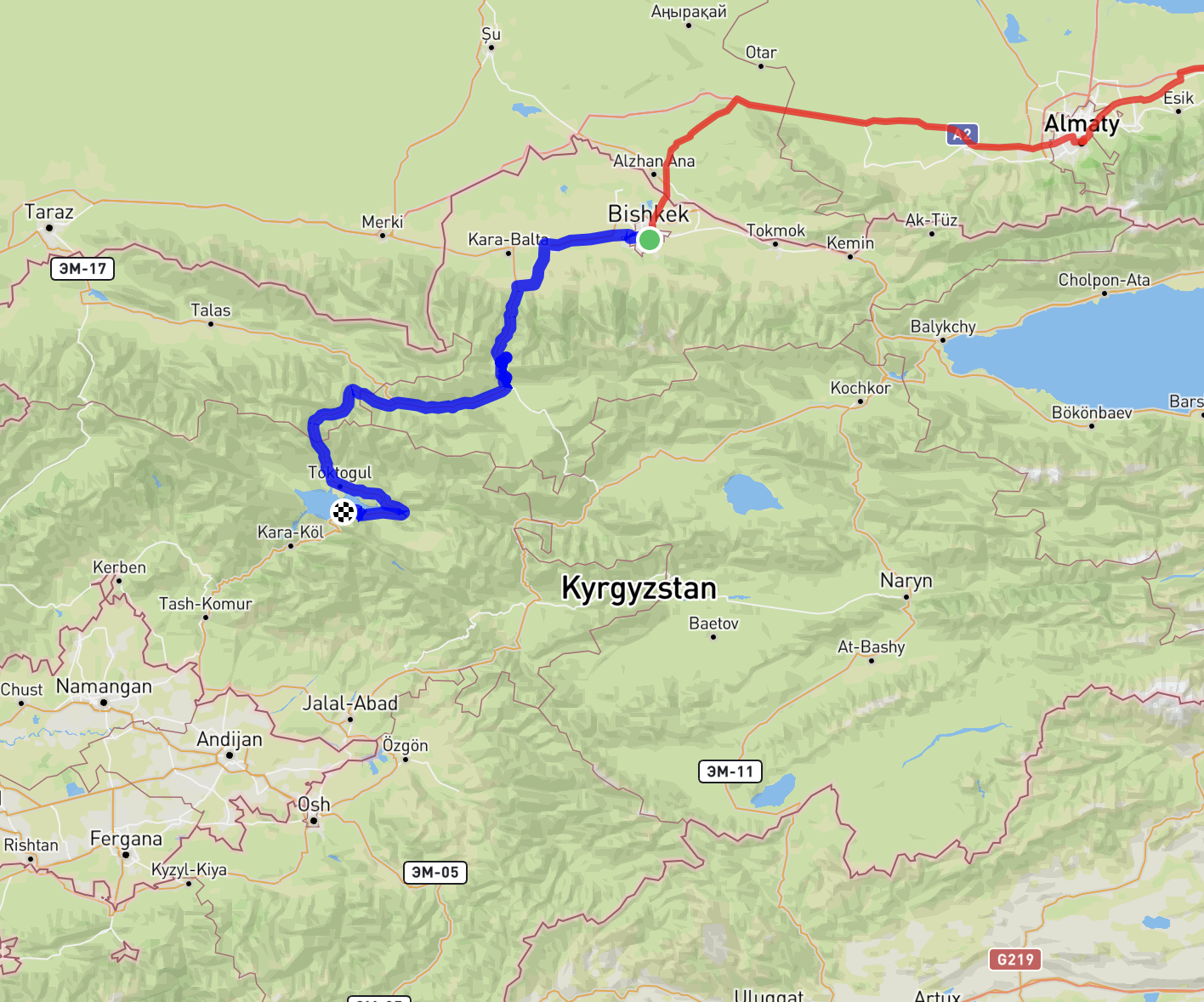 And then, at ~10am, I set off. Leaving the city, I rode westward, and then turned south to ride through a pass in the Tian Shan mountains.