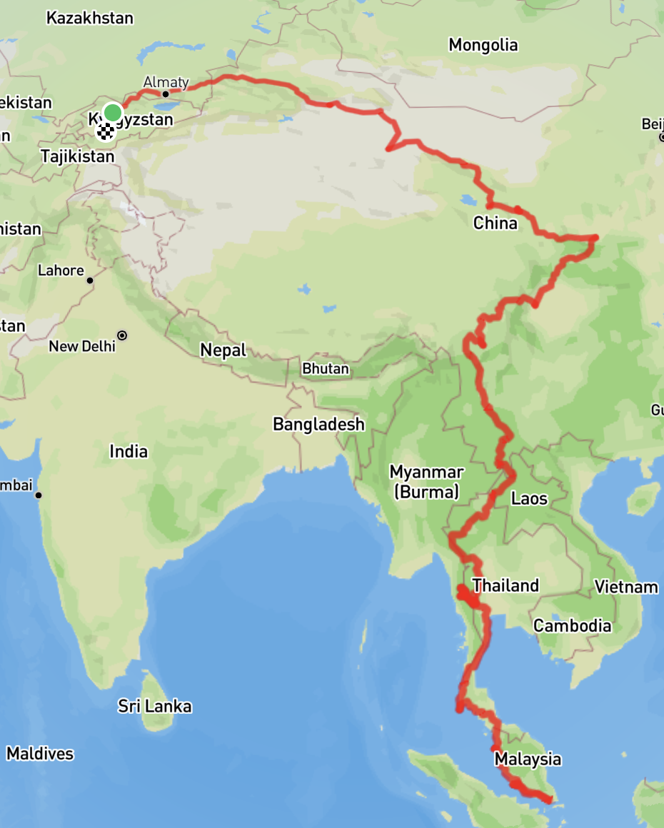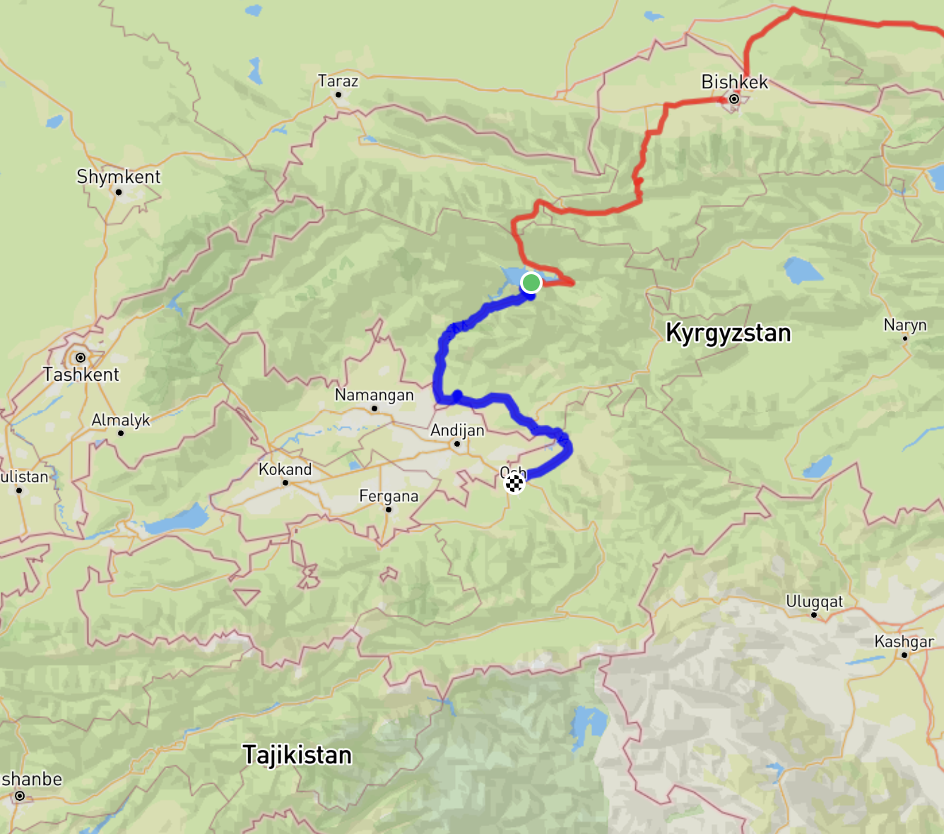 - Ride the Pamir highway again, back to Osh, and trace my current route back to Almaty (this is likely a bit demanding, because it requires 10-15 hours of riding a day with no breaks to get back without losing time).