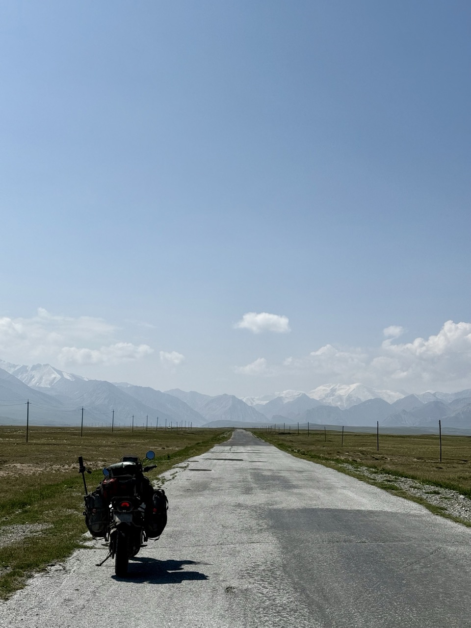 The ride to the border crosses the grasslands and approaches the Trans-Alay range, which is home to Lenin Peak (as pictured in yesterday’s blog). The Kyrgyz side of the border performs formalities at the foot of the mountains, and there is another outpost before the actual border where documents are checked once more.