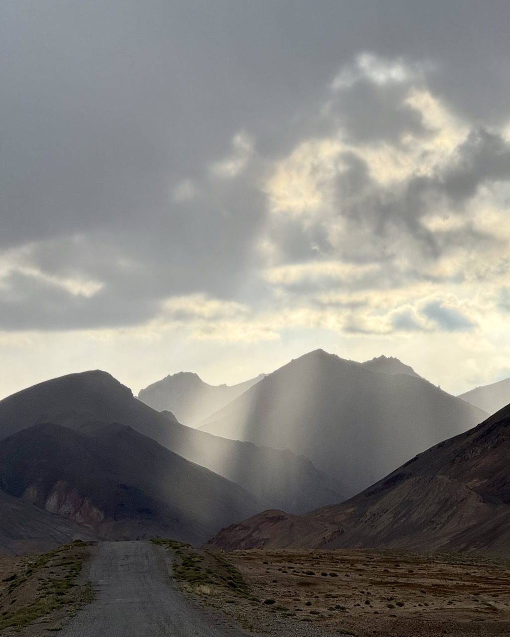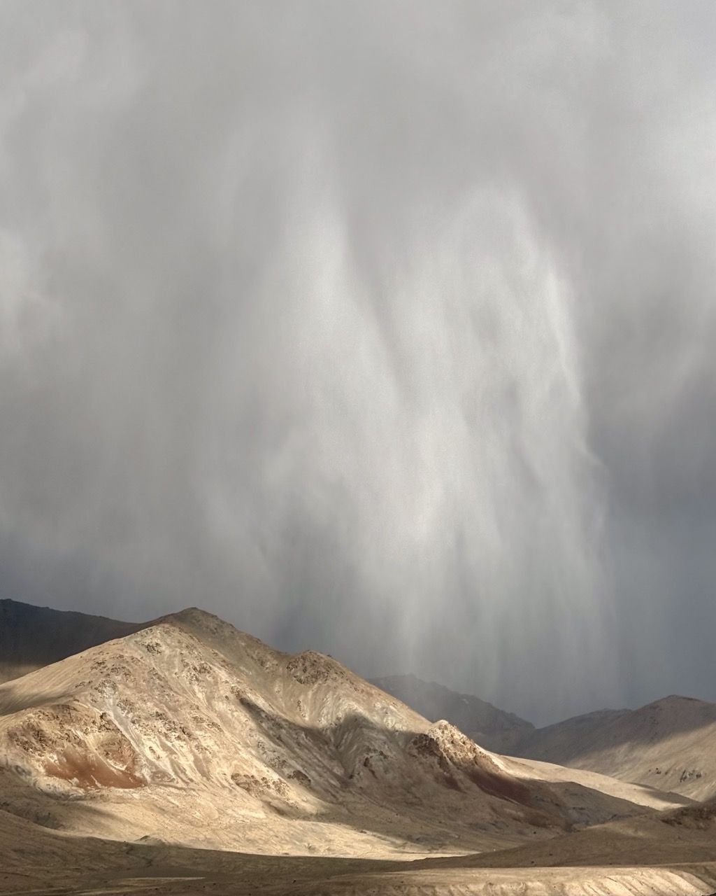 What was also awe inspiring was the weather. It seems incredibly so localised against the vastness of the mountains; rain was confined to small patches in the distance; lightness came from gaps in the clouds, with areas of darkness cast over the landscape. Spotlights from heaven could be seen against the otherwise desolate landscape.