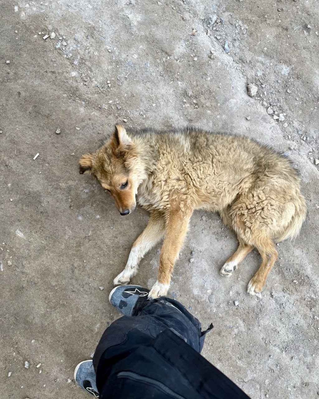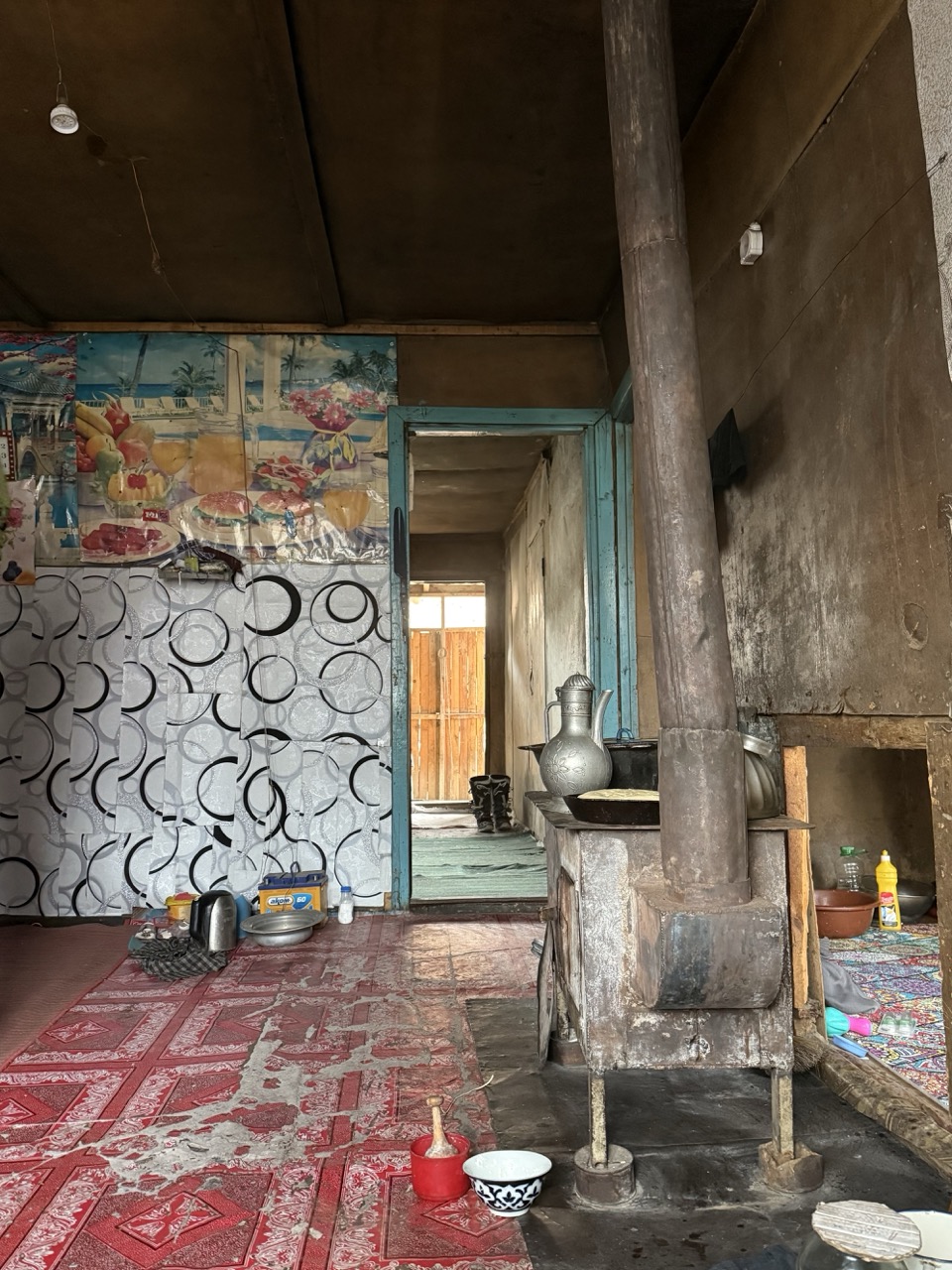 They had a granddaughter of ~2 years old and a cute dog called Rex. Dinner was buttered Kyrgyz bread (they were Kyrgyz, set their time to Kyrgyz time and spoke the Kyrgyz language), some goat meat, onions, and eggs. While basic, it was extremely delicious (especially being in the warmth of their home, after freezing and icy roads).