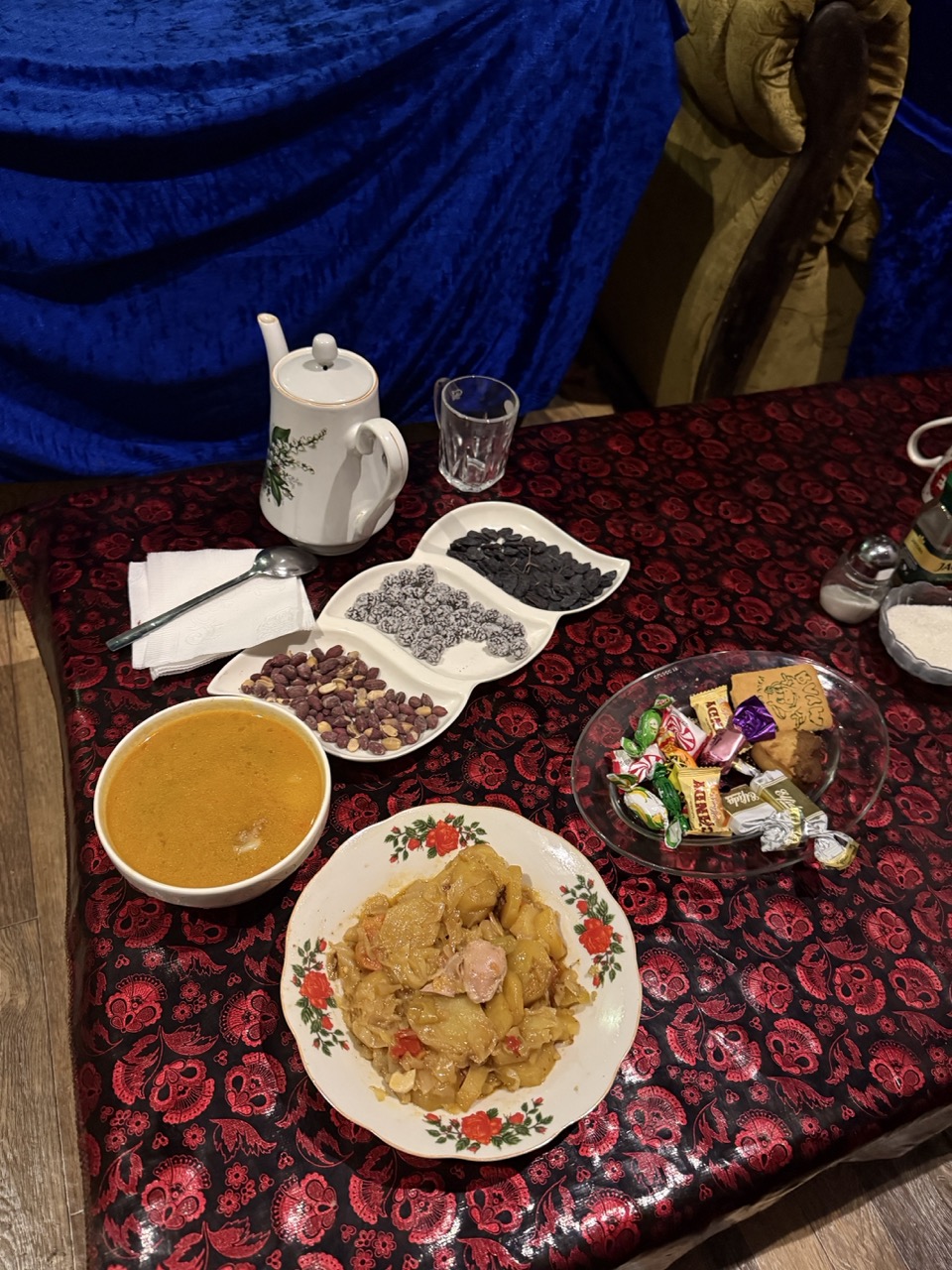 Lunch was at Alichur, and was delicious. French fries, meat, and soup.