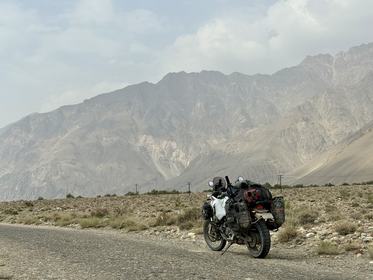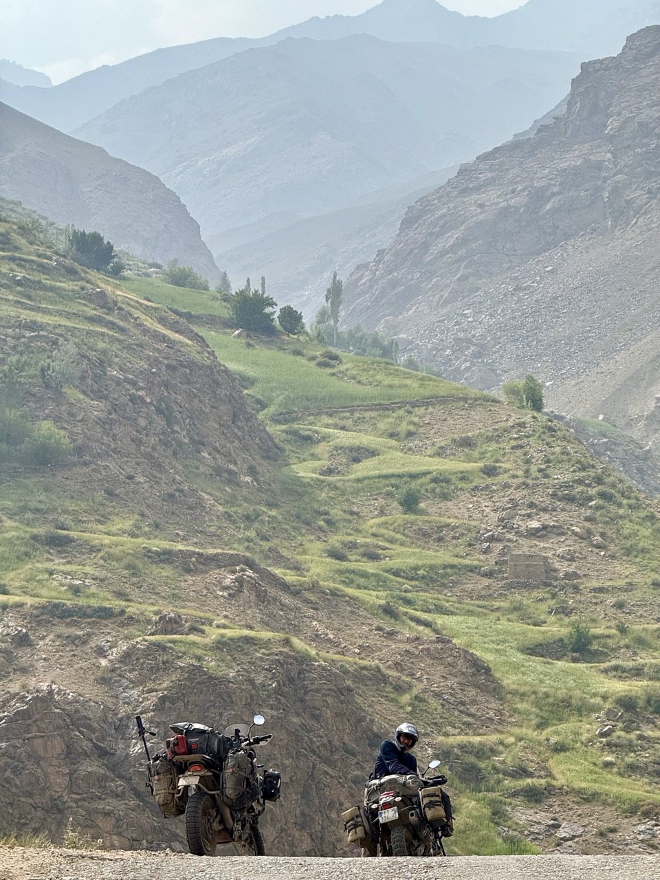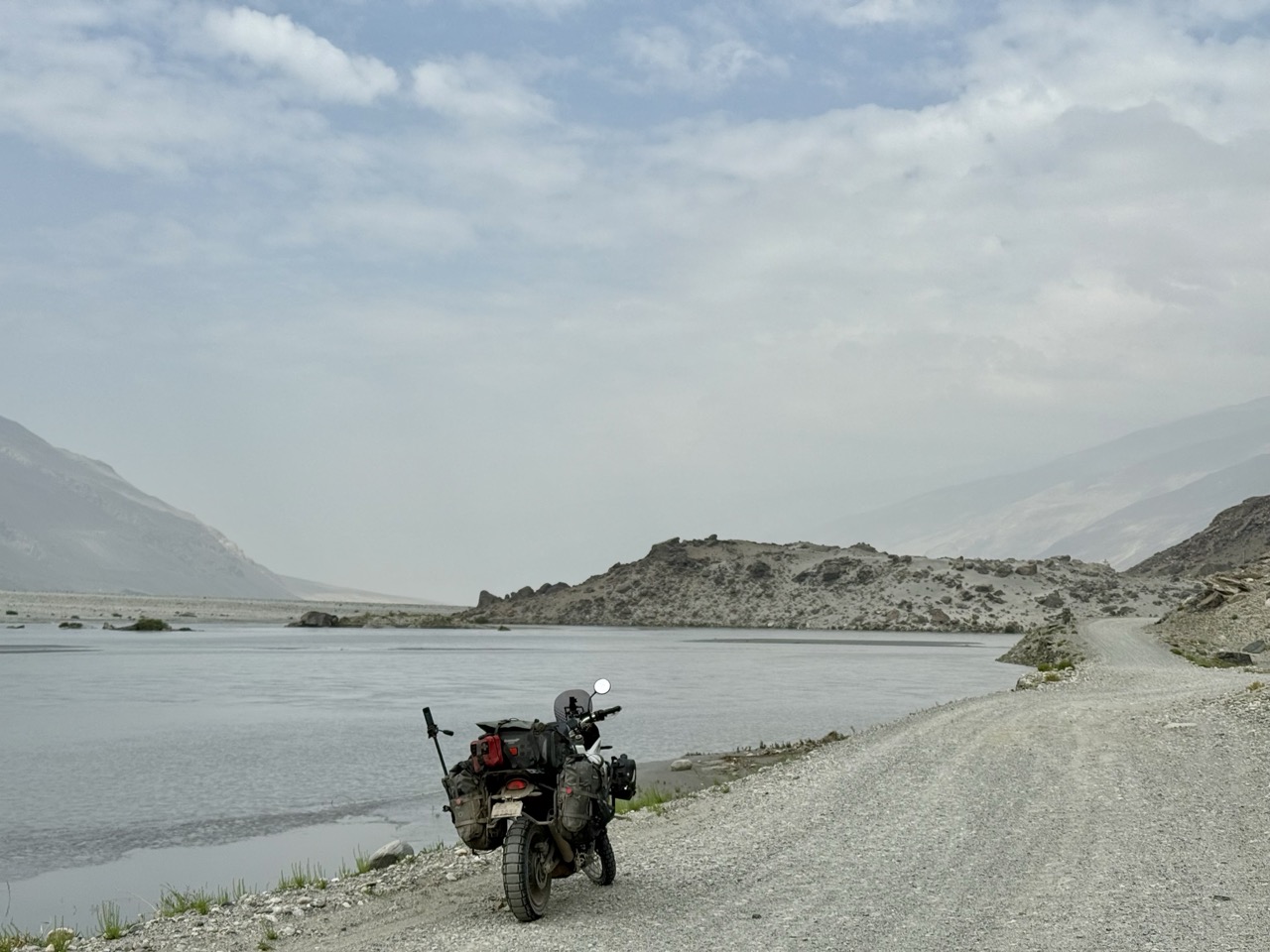 This was quite the encounter. He was 62, and riding using a paper map, and on his way to Mongolia from France. We chatted for a while - firstly on the route conditions I had taken (he had turned back because he wasn’t too keen to do the river crossing and was trying to manage his regret/fomo), and then on general route tips riding up to Kyrgyzstan. I told him to be careful of the ice on Ak Baital pass and to stop at Tulpar-Kul lake. We were both headed to Khorog, so we rode together for the remainder of the afternoon.