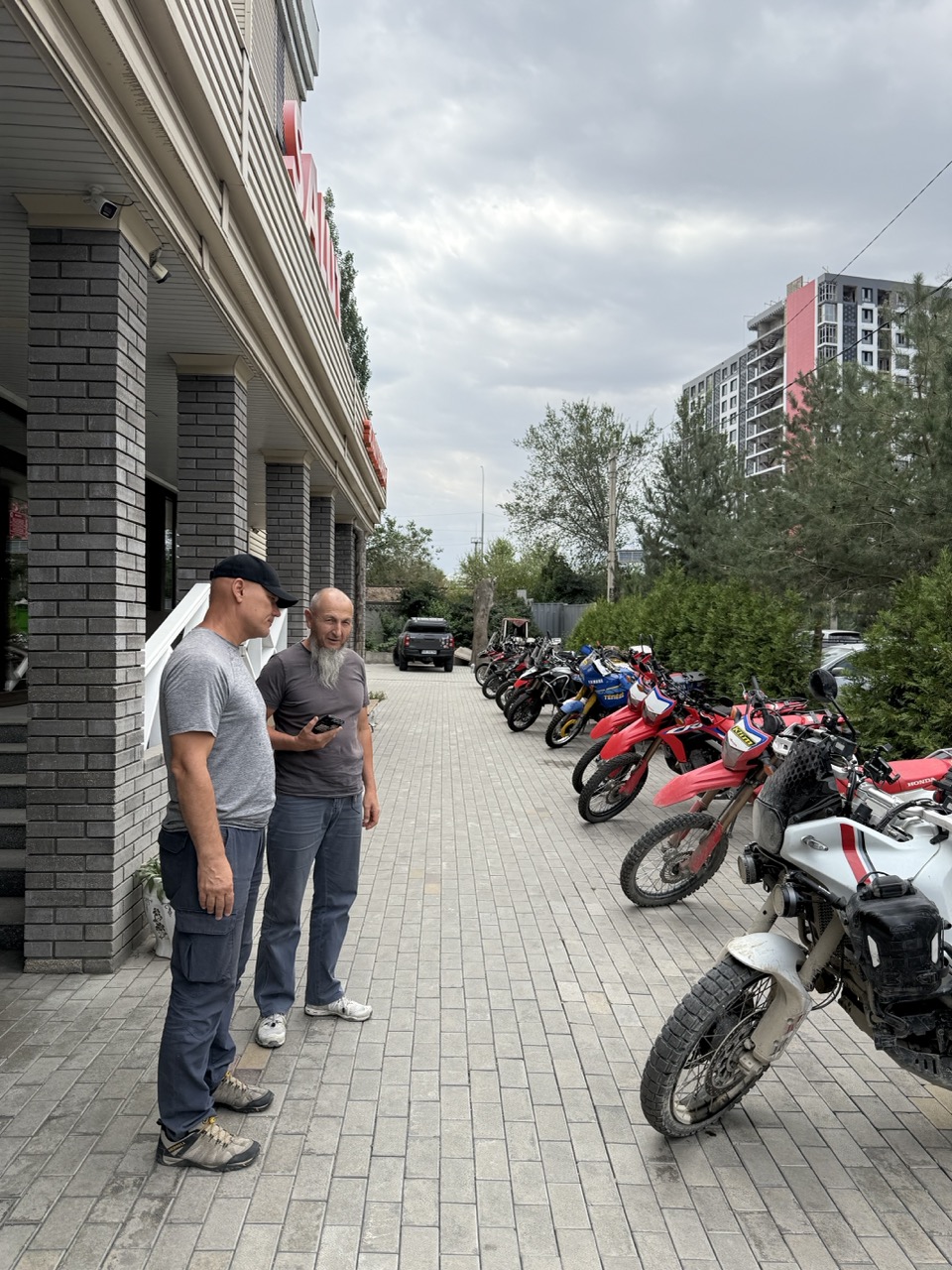 The resident bikers at the hotel had a look and said the equivalent of “it’ll be fine” in Russian. One had even started a journey to Georgia and back - 20,000 KMs - with leaking forks and never even stopped to repair them (no time and no seals). He just topped up the forks with oil whenever he could and ended up with an oil soaked radiator, brakes, you name it. This certainly gave me comfort, so I decided to head for Almaty.
