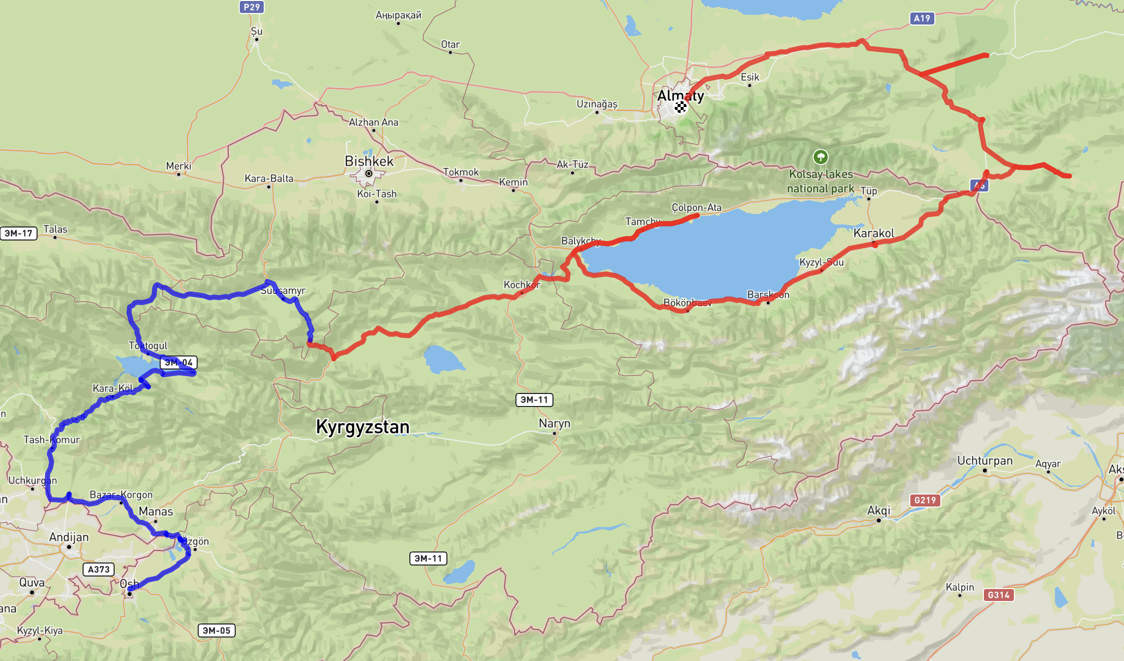 Today’s long route to Osh