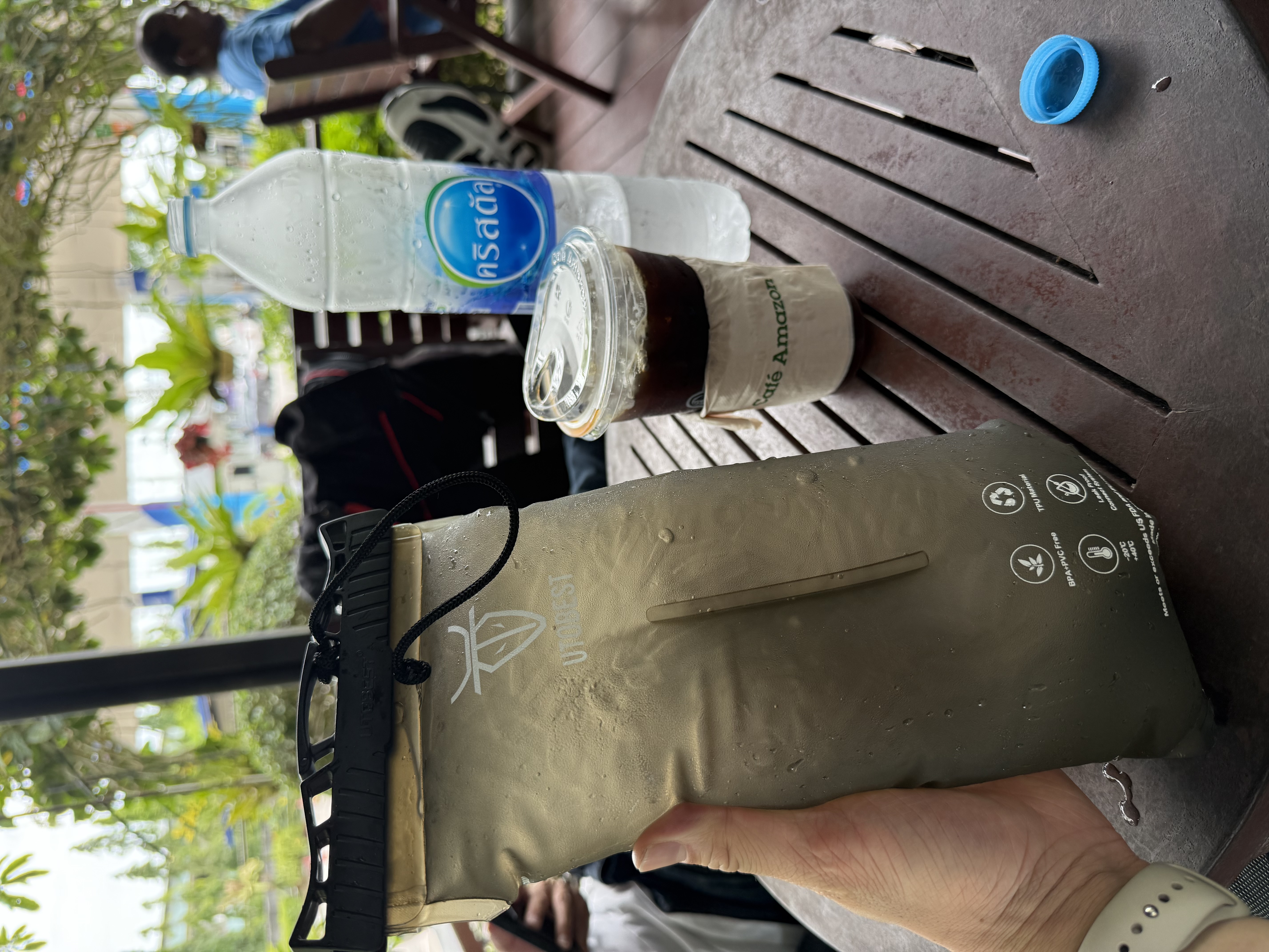 Rest break at Cafe Amazon…ft my amazing hydration bladder filled with ice!