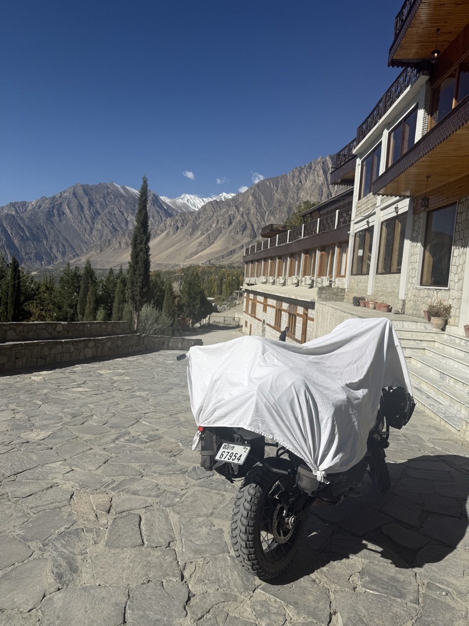 To my surprise, the hotel put a sheet on top of my bike overnight