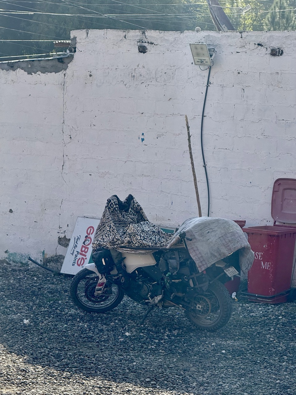 Morning in Jaglot; they put blankets on my bike again! So nice