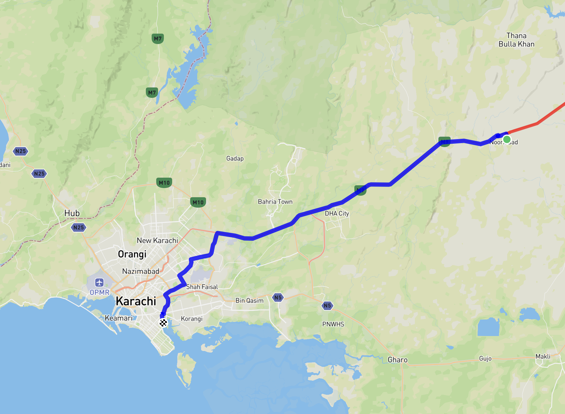 And so my journey comes to a close. Today’s ride is a short one, ~100km along the M-9 Motorway to Karachi.