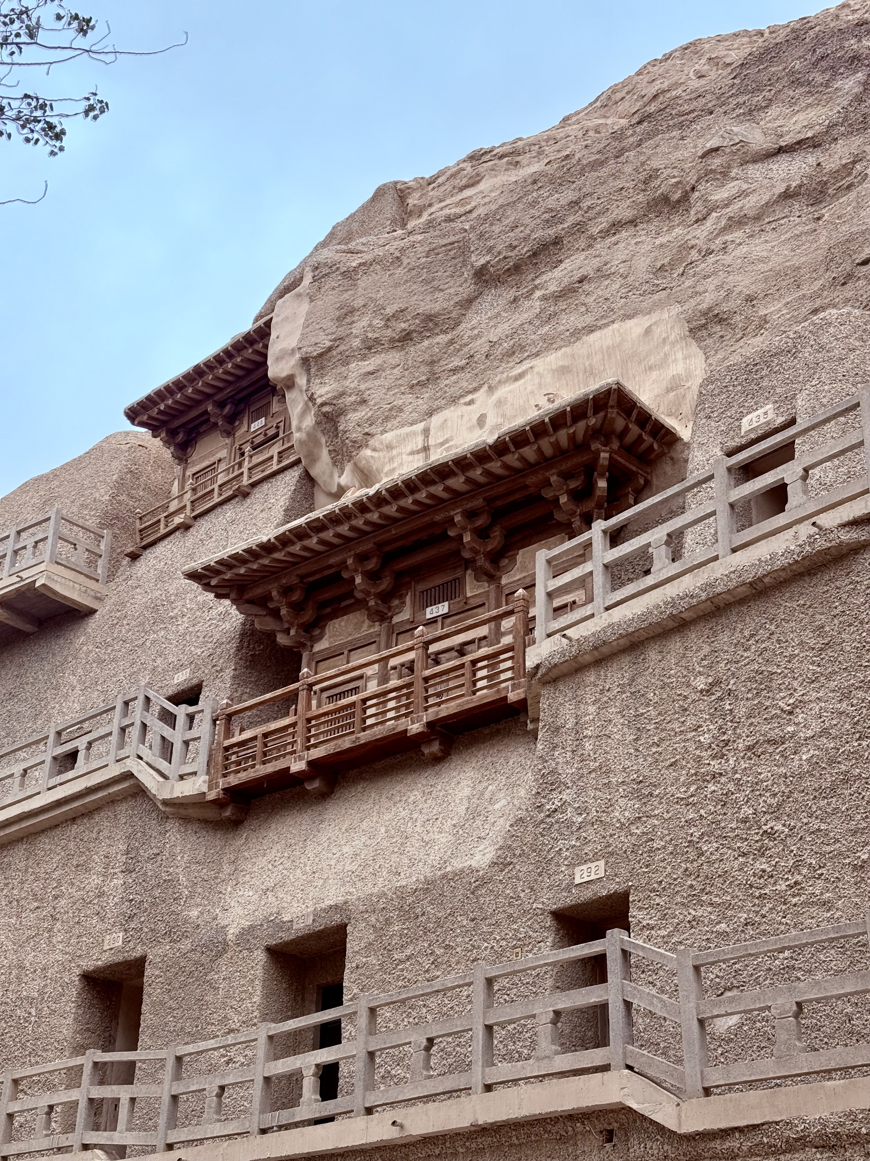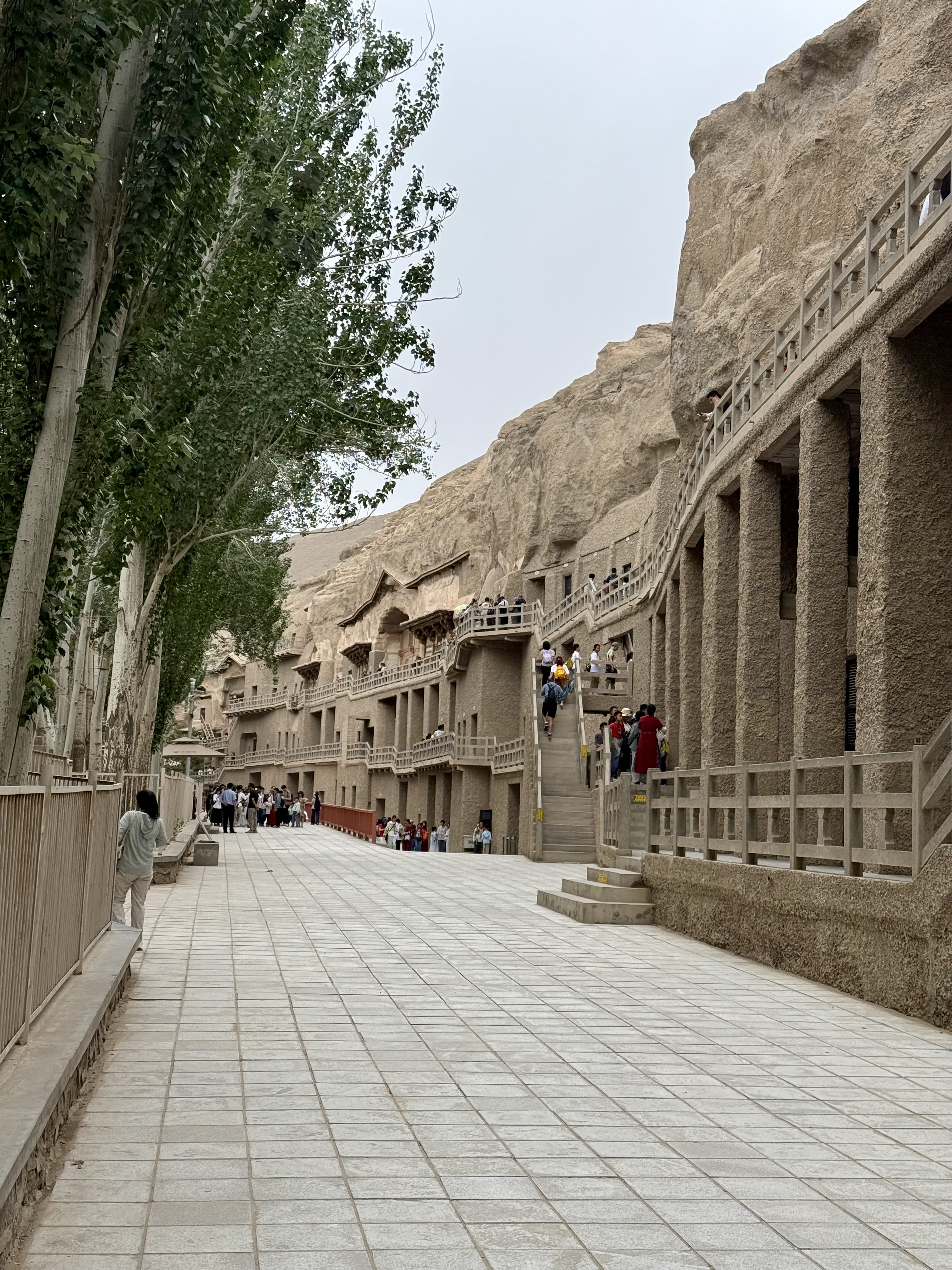 The Mogao Grottoes are a series of man made caves, hollowed out of a cliff in the Gobi Desert near Dunhuang. This was done at the behest of monks and wealthy patrons from the 5th century (Wei Dynasty) onwards, who inside placed statues of Buddhas, bodhisattvas, and protectors and murals of thousands of Buddhas. It is said that Buddhism crossed over to China from India via the Silk Road, with Dunhuang being a major transit point at the time.