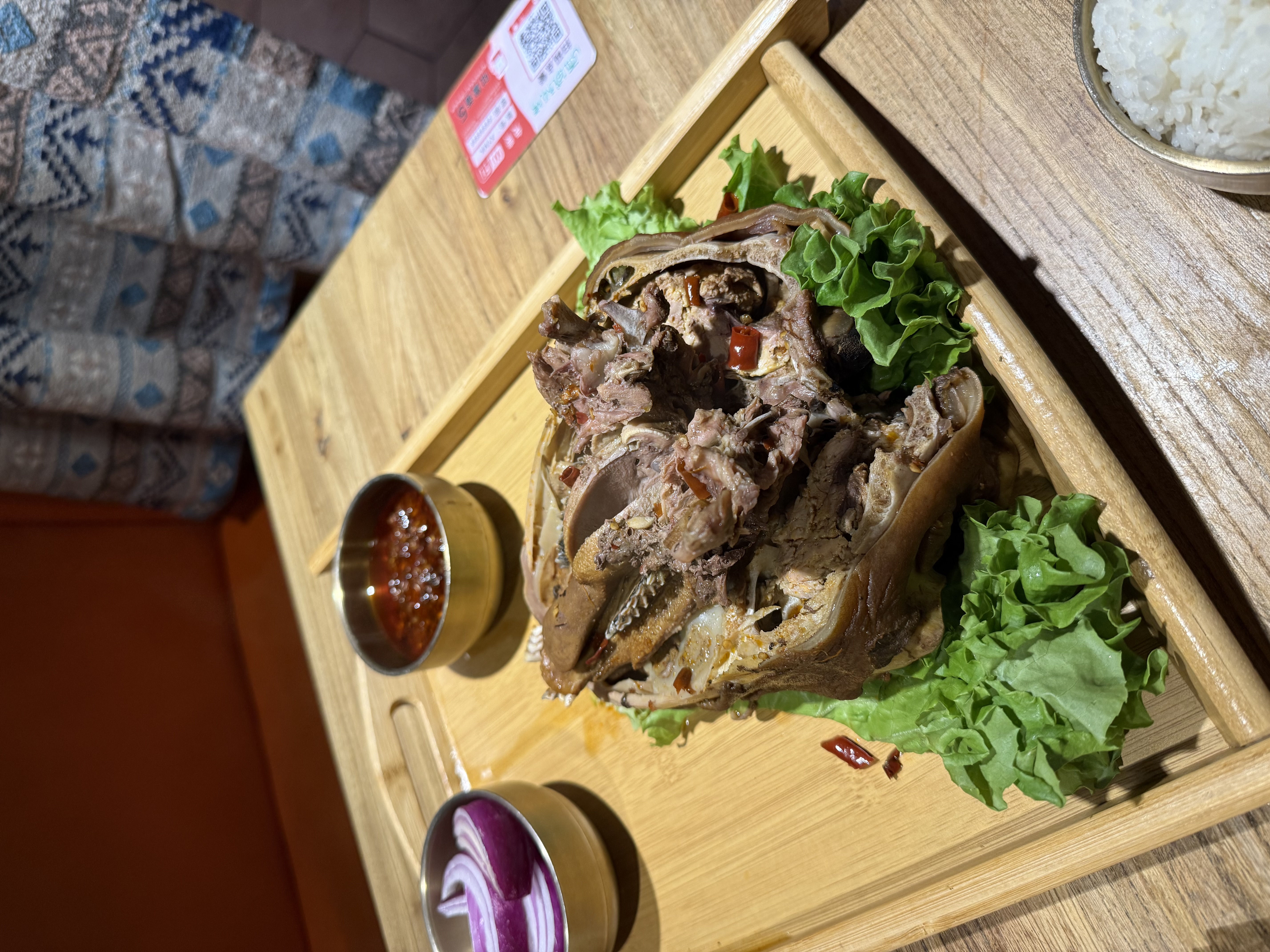 Then it was time for lunch, this time in town, where I had traditional food from Dunhuang. I had the chance to try a sheep’s head, which actually was pretty good (including all the organs, like eyes, brains etc). Would eat again.