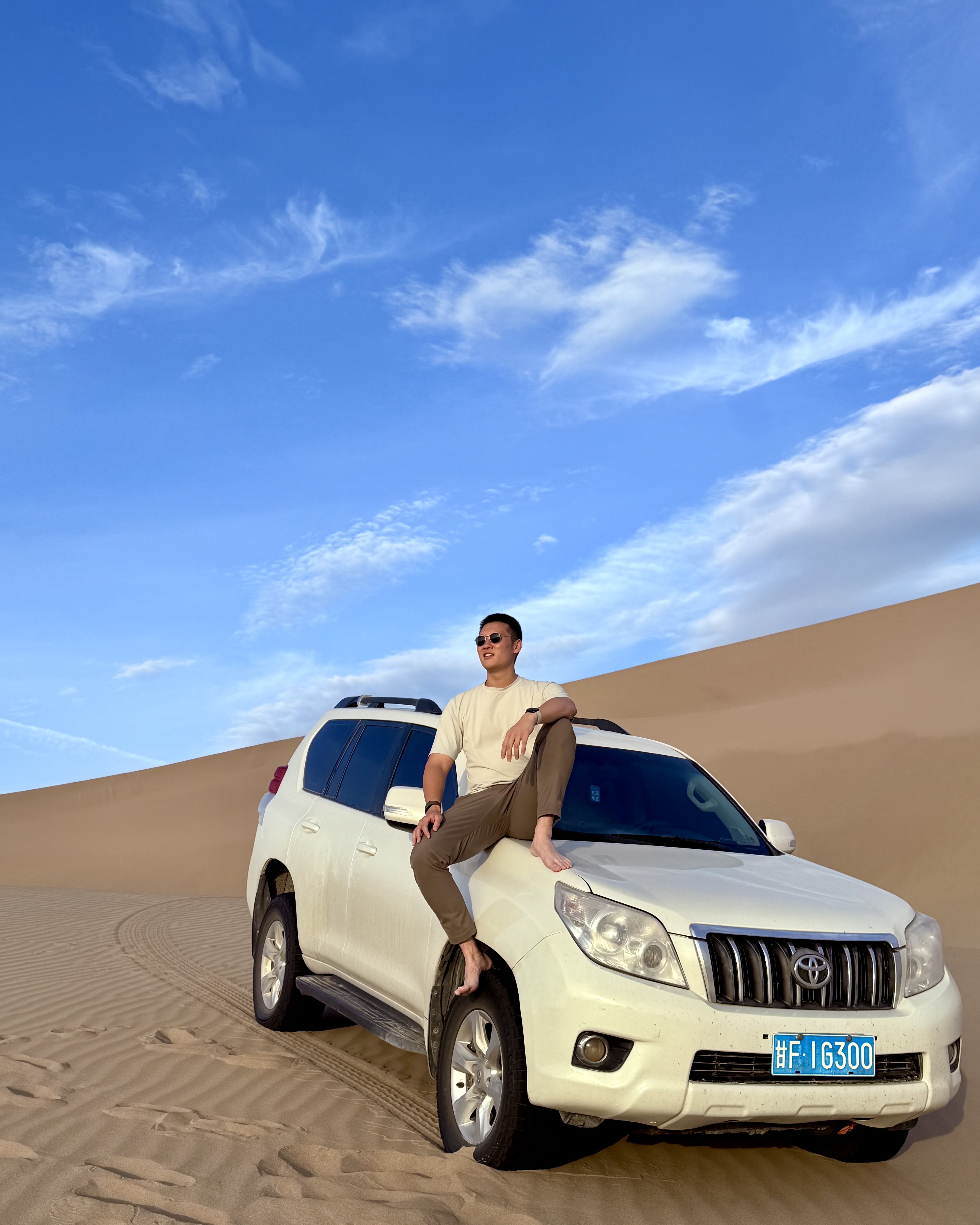 One of the 4WDs was stopped by the side of the road, so I struck up a conversation. “Are you a group of offroaders?” “Yes, but we’re actually taking tourists out to the desert today.” “Oh what’s that like and are you free tomorrow?” “4 hours from 6-10PM…1500RMB” “I’m in. Let’s add WeChat and I’ll see you tomorrow!”